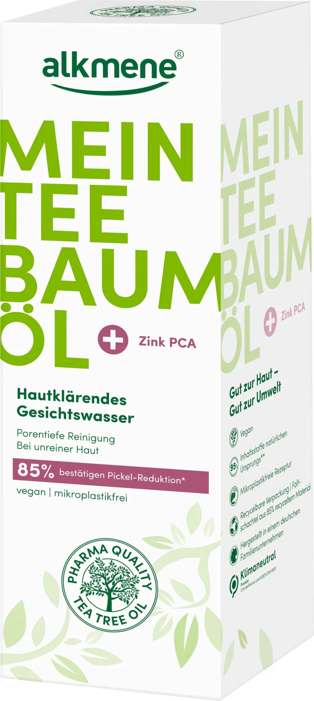 Dzięki cennemu połączeniu pielęgnacyjnemu olejku z drzewa herbacianego i cynku PCA ten tonik do twarzy głęboko oczyszcza skórę. Skóra jest głęboko oczyszczona bez wysuszania jej. Olejek z drzewa herbacianego i cynk pomagają również regulować wydzielanie sebum, dzięki czemu tonik jest idealny dla skóry z niedoskonałościami. Formuła jest wegańska i nie zawiera mikroplastiku.