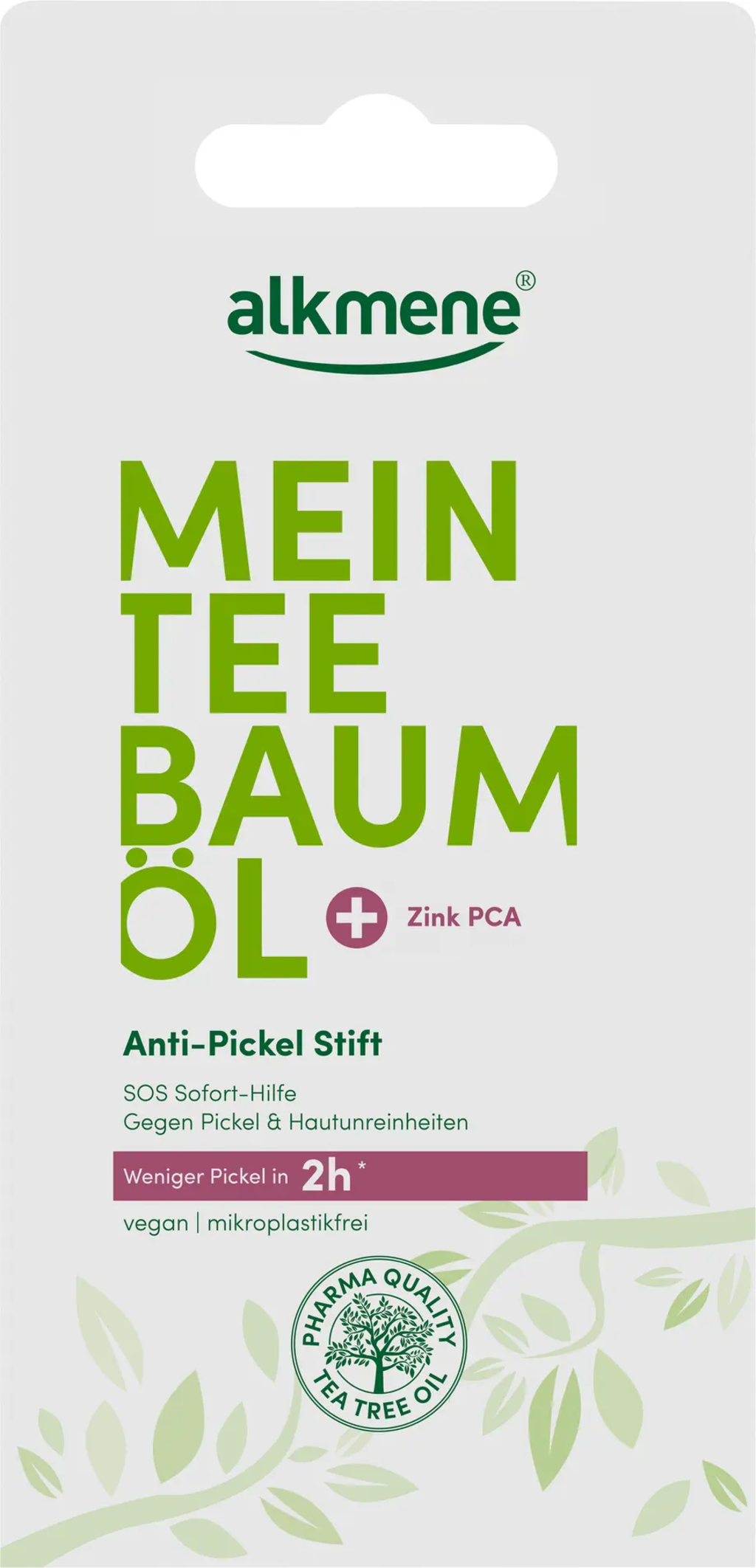 Sztyft przeciw pryszczom z olejkiem z drzewa herbacianego od alkmene wspiera skórę, gdy pojawiają się pryszcze i zaskórniki. Jego wegańska formuła jest wzbogacona olejkiem z drzewa herbacianego i cynkiem PCA, zapewniając optymalną pielęgnację dotkniętych obszarów skóry. Formuła jest również niekomedogenna, co oznacza, że pory nie są zatykane.
