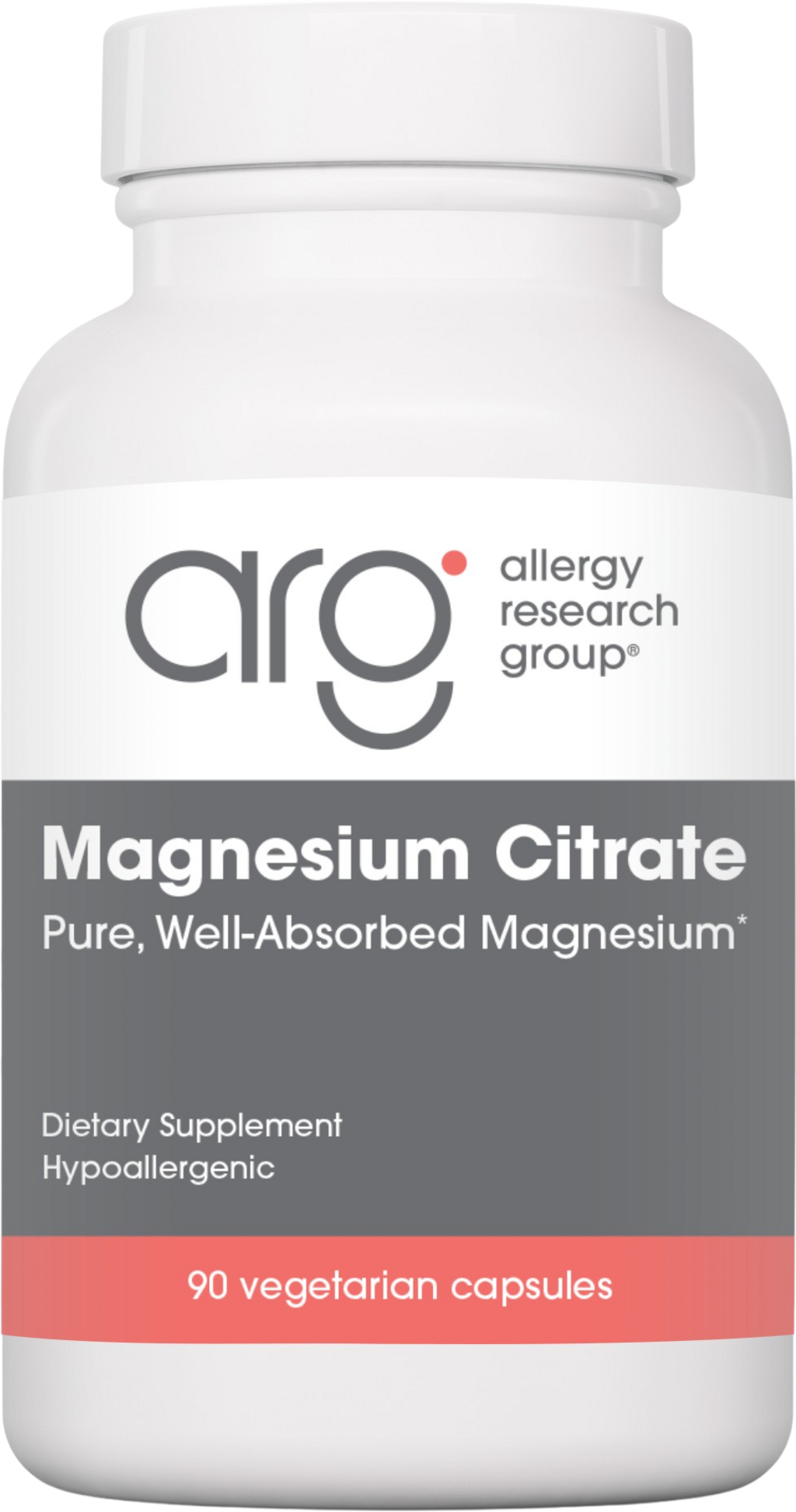 Allergy Research Group oferuje niniejszym produktem magnez wiązany cytrynianem i dlatego ma on dobrą biodostępność oraz jest szczególnie polecany dla osób z małą ilością kwasu żołądkowego. Cytrynian pochodzi z owoców cytrusowych, dlatego ma niski potencjał dla alergików.