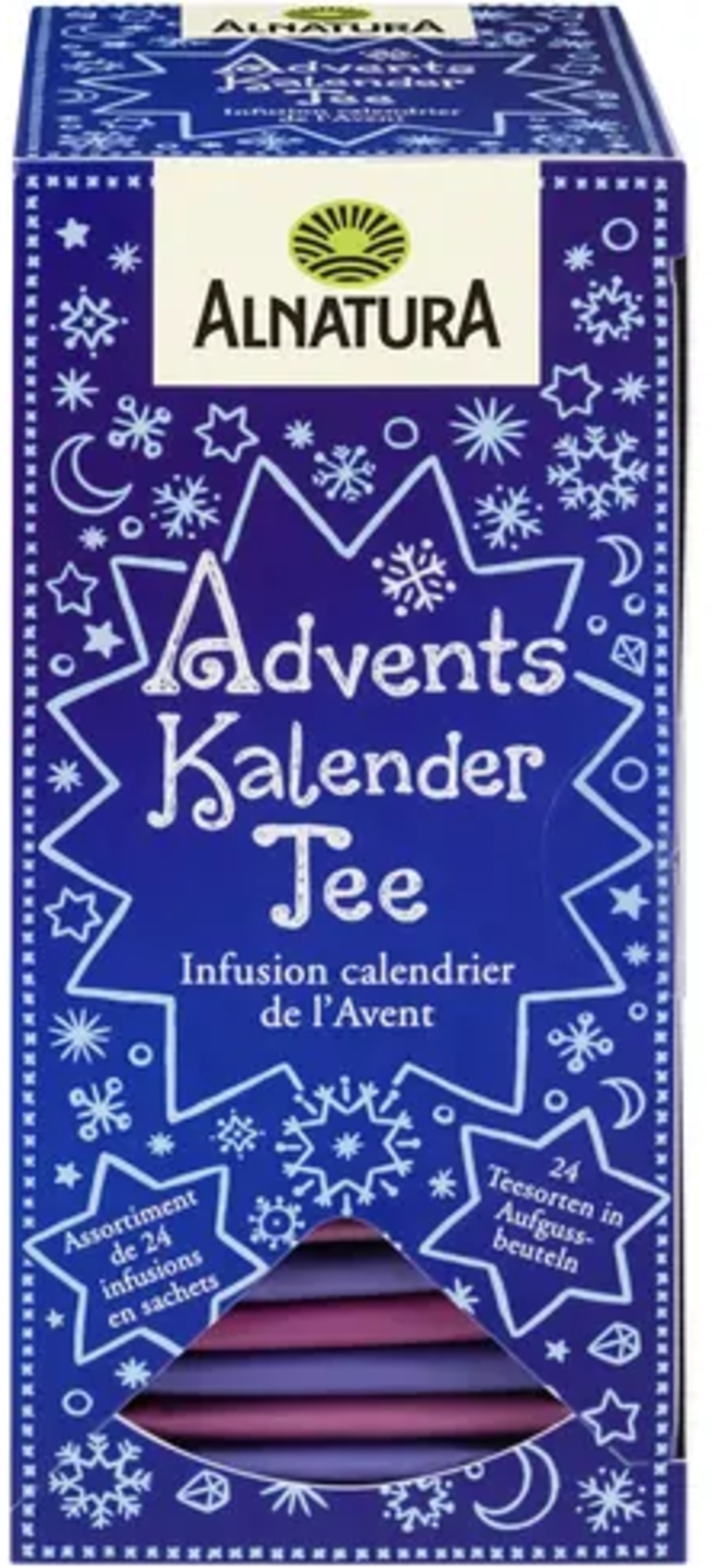 Dzięki kalendarzowi adwentowemu z organiczną herbatą od Alnatura możesz cieszyć się 24 pysznymi organicznymi herbatami w okresie poprzedzającym Boże Narodzenie i skrócić oczekiwanie na przyjście Dzieciątka. Różne herbaty ziołowe, korzenne, zielone, czarne i owocowe oczarują Twój Adwent i sprawią, że będzie on wyjątkowym przeżyciem.