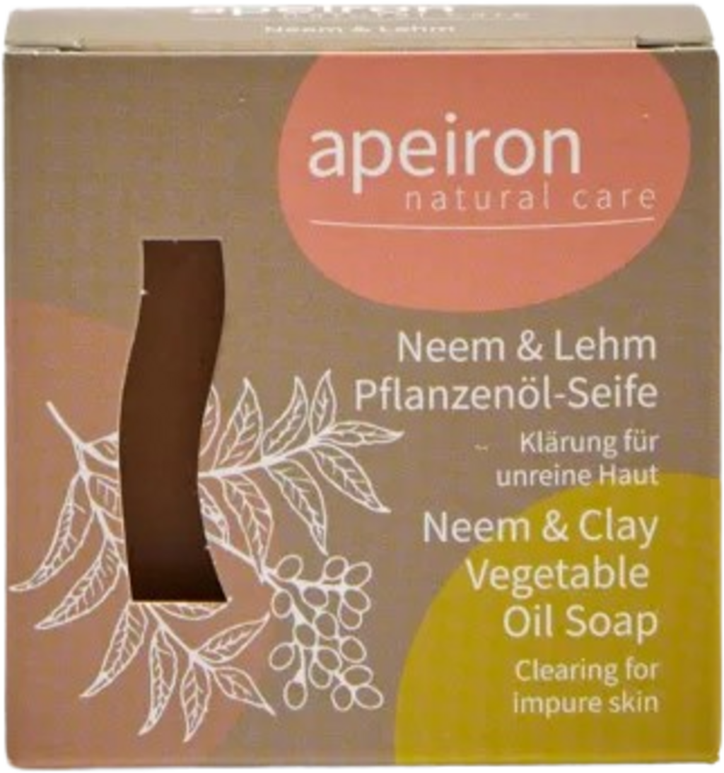 Apeiron Mydło z olejami roślinnymi miodla indyjska i glina, 100 g