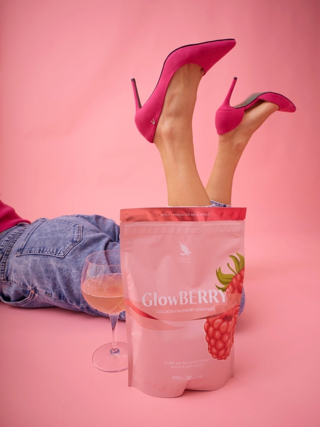 GlowBERRY to świeży, pyszny napój zawierający 10 000 mg hydrolizowanego kolagenu, 125 mg kwasu hialuronowego oraz niezbędne mikroelementy: witaminę C i cynk. Formułę uzupełniają owoce acai i dzikiej róży. Kolagen jest naturalnie występującym białkiem strukturalnym w organizmie, ale jego produkcja spada wraz z wiekiem.
