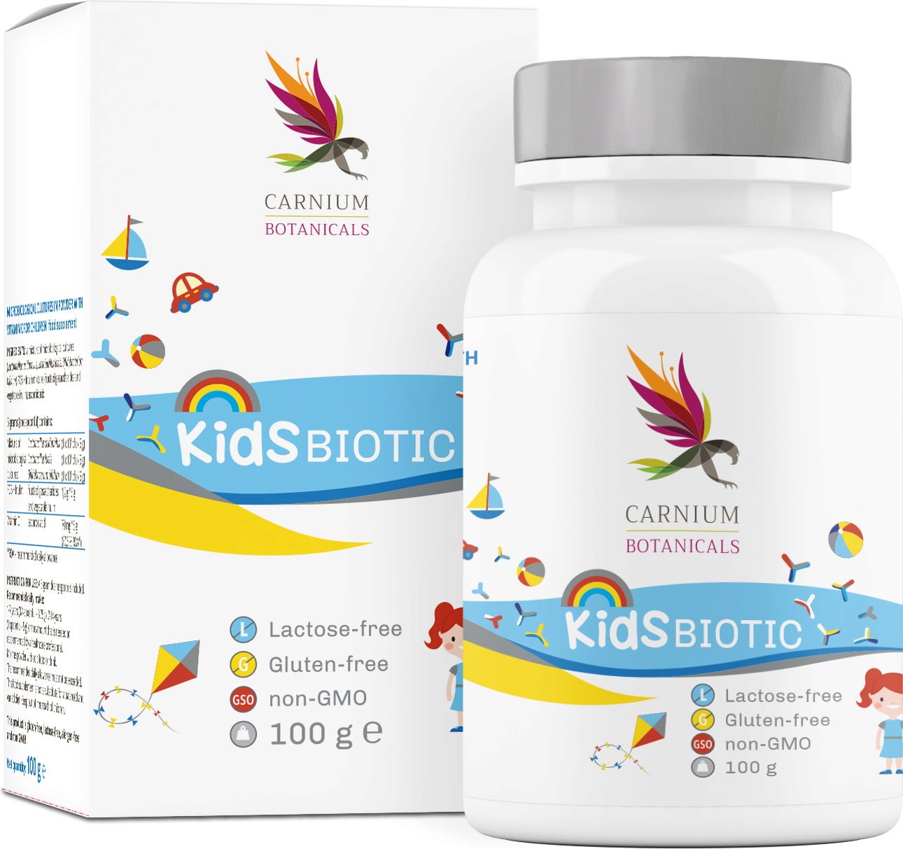 Kids Biotic od Carnium Botanicals zapewnia dziecku kultury mikrobiologiczne. Formuła łączy prebiotyki, probiotyki i witaminę C, aby zapewnić dziecku najlepsze możliwe wsparcie. Proszek jest wegański i nie zawiera glutenu, laktozy ani dodatku cukru.