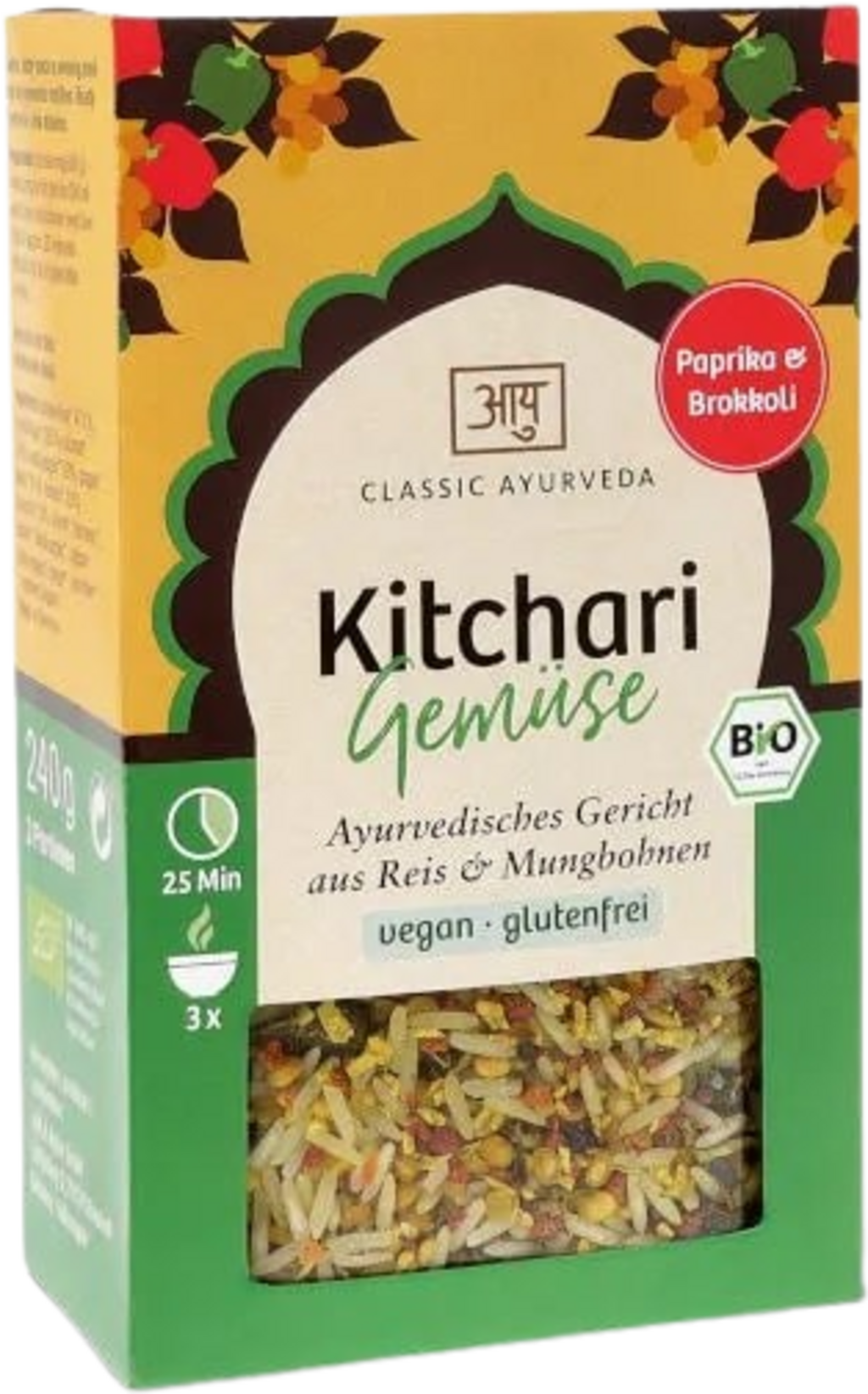 Ten produkt skierowany jest do wszystkich, którzy chcą wyczarować na stole super pyszne, ajurwedyjskie danie w jak najkrótszym czasie. Smaczne, ekologiczne kitchari jest idealne dla Ciebie. Smaczne połączenie ryżu, fasoli mung i warzyw uszlachetnione licznymi przyprawami ajurwedyjskimi.