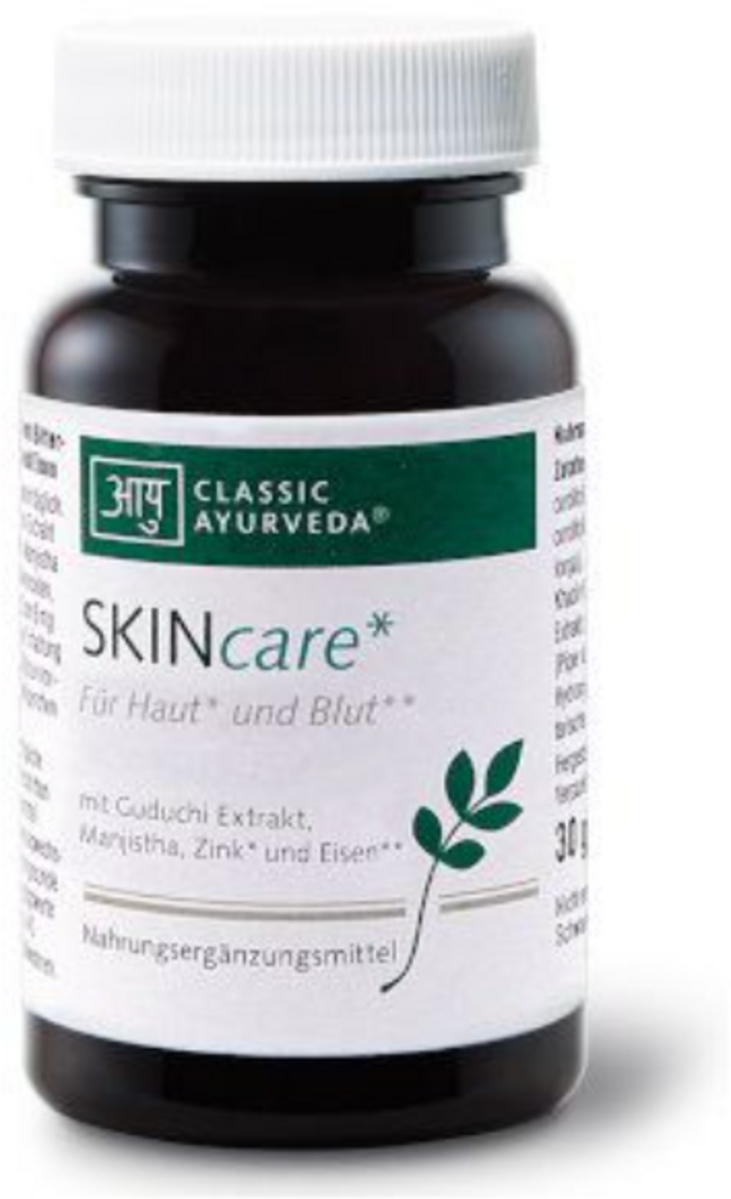 Kapsułki SKINcare od Classic Ayurveda łączą mineralne pierwiastki śladowe z tradycyjnymi substancjami roślinnymi. Formuła zawiera manjistha, guduchi i amla, a także kurkumę, lukrecję i tulsi. Kompozycja ta została opracowana w celu uzupełnienia codziennej diety.