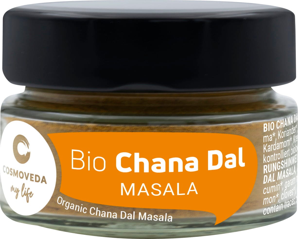 BIO Channa Dal Masala od COSMOVEDA to specjalnie dopasowana, ajurwedyjska mieszanka wyszukanych przypraw, która pozwoli Ci przygotować prosto lekko strawne dania Channa Dal.