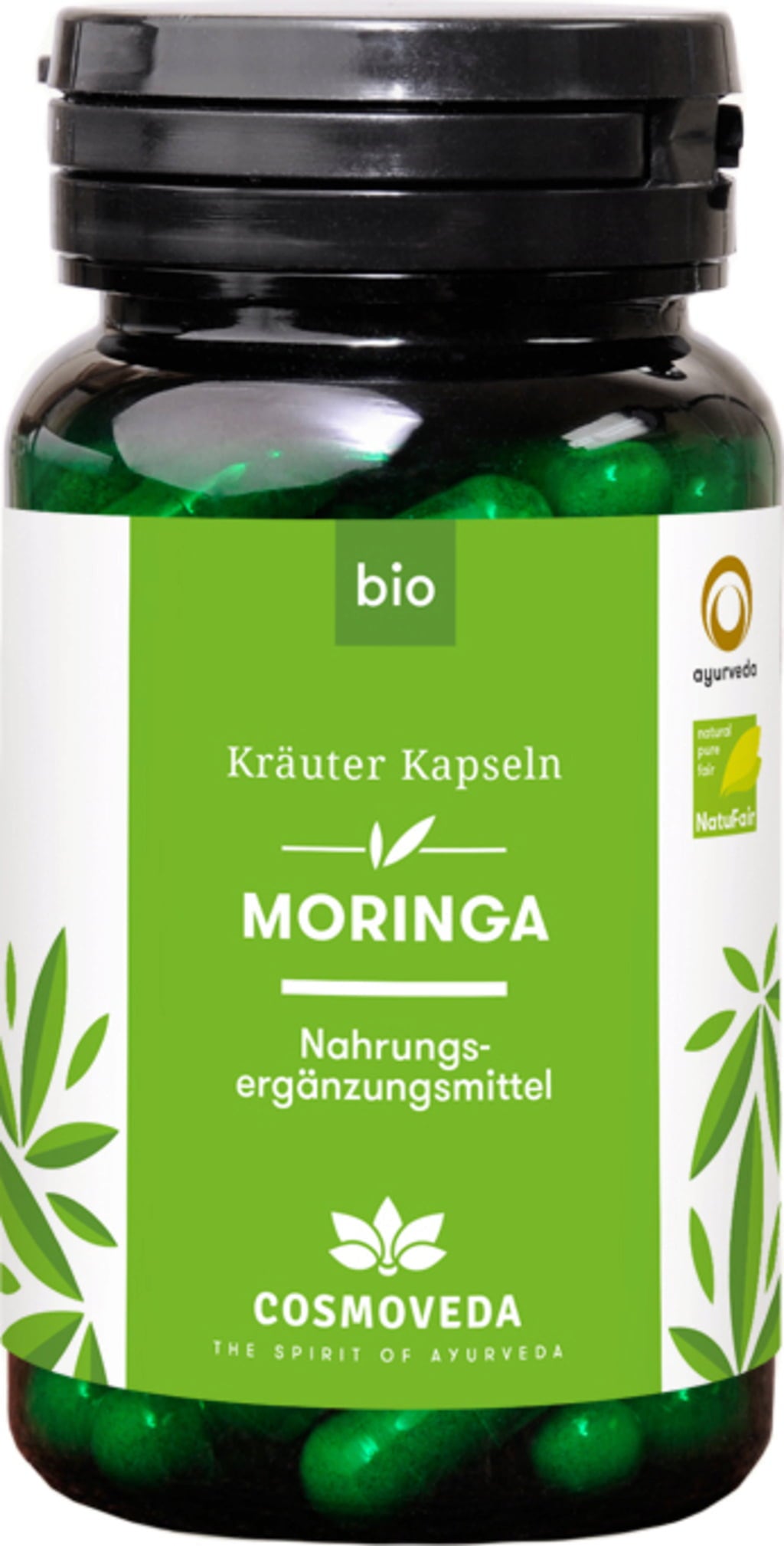 Moringa oleifera - moringa olejodajna znana jest również pod nazwą „drzewo chrzanowe” i pochodzi z regionu Himalajów w północno-zachodnich Indiach. W Ajurwedzie używa się liści rośliny. Proszek z suszonych liści, który jest drobno i delikatnie mielony we własnej produkcji (poniżej 40°C), pochodzi z indyjskich i Sri Lanki, pochodzących ze sprawiedliwego handlu i ekologicznych projektów Cosmoveda.