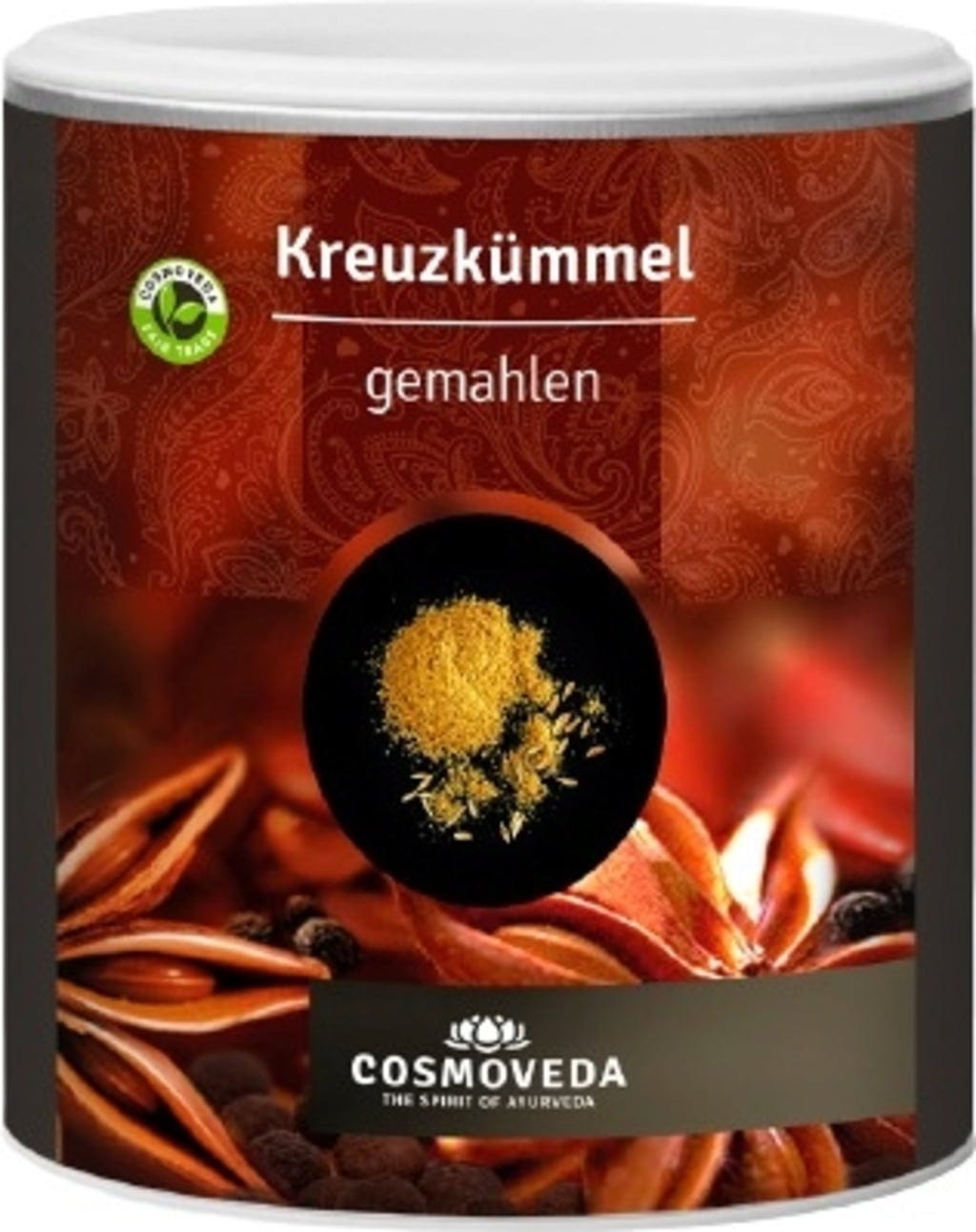 Kmin rzymski jest już zmielony. Kmin ze swoim wyśmienitym aromatem, obok kolendry, imbiru i kurkumy, jest jedną z najważniejszych przypraw kuchni indyjskiej i ajurwedyjskiej. Może być stosowany na wiele sposobów i jest szczególnie popularny w curry, napojach, jogurcie, sałatkach (raita) i marynatach.