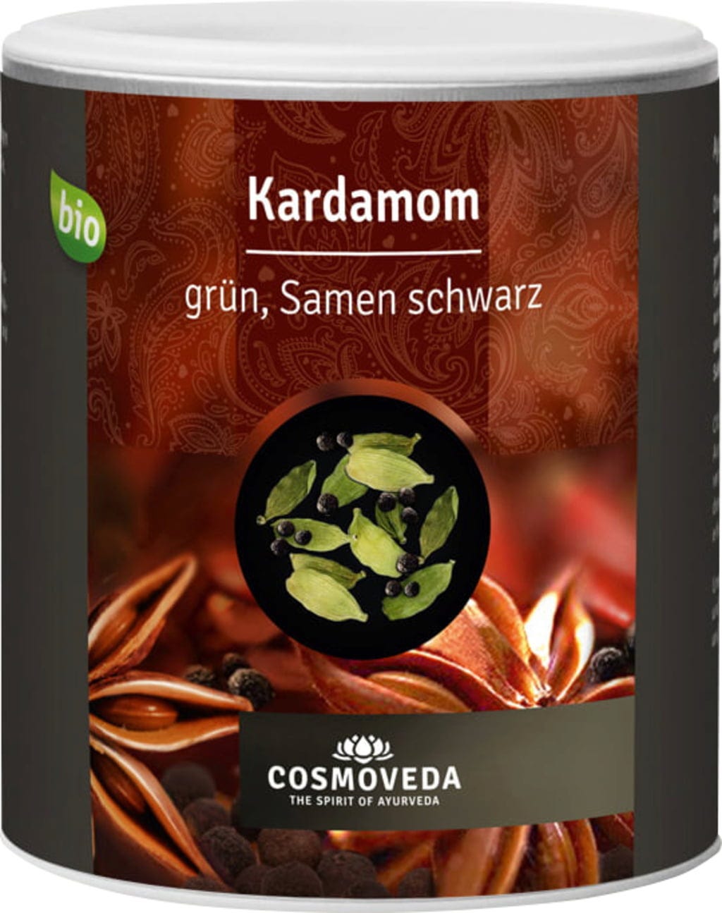 Cosmoveda Organiczny zielony kardamon, czarne nasiona, 350 g