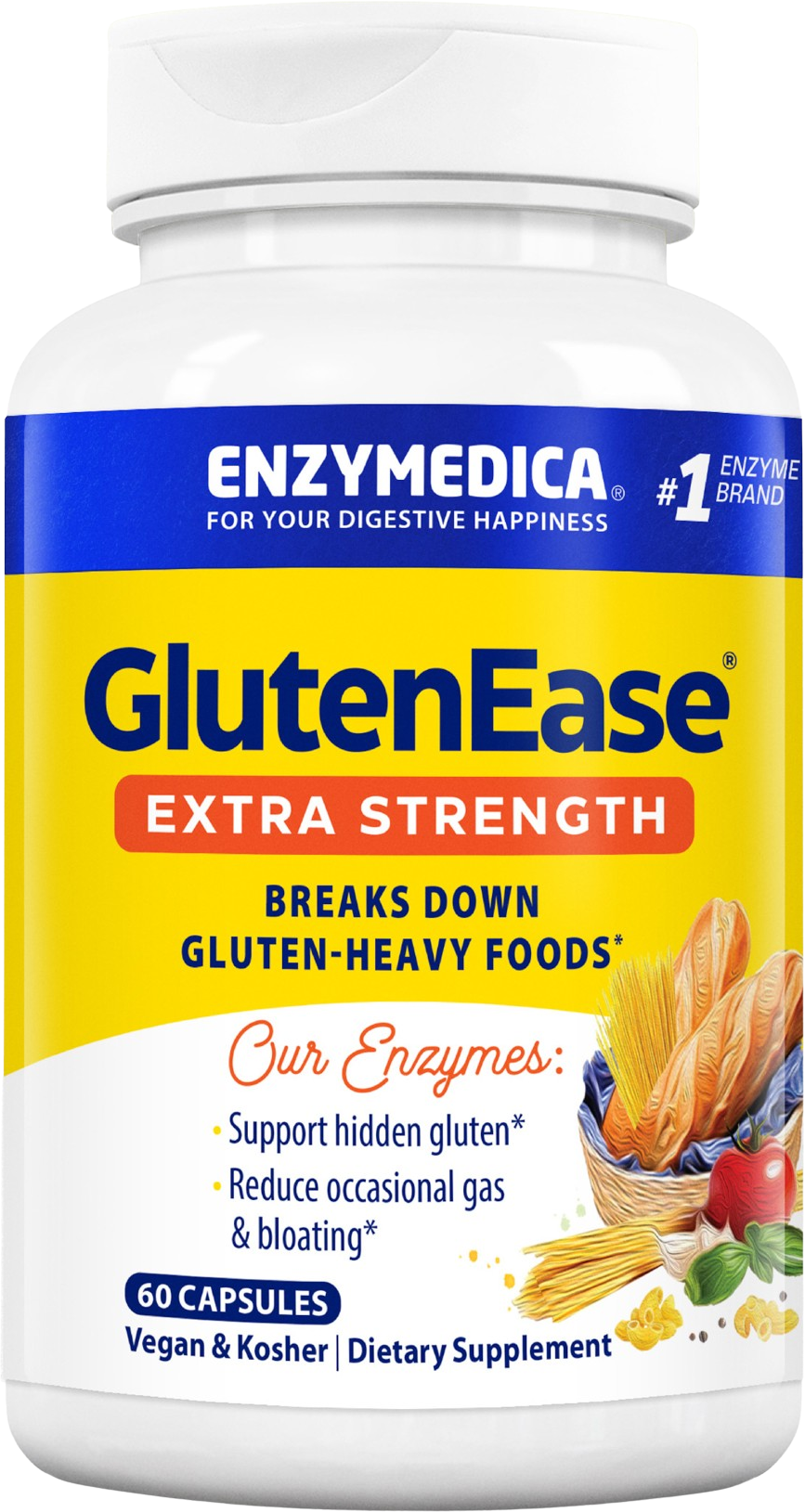 GlutenEase Extra Strength zawiera dwa razy więcej Protease Thera-blend™ (enzymy, które działają przy różnych wartościach pH) w porównaniu do dipeptydylopeptydazy 4 (DDP- 4).
