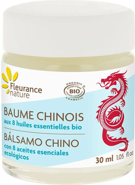 Balsam chiński oferuje właściwości ośmiu olejków eterycznych: z mięty pieprzowej, eukaliptusa, niaouli, goździków, imbiru, tymianku, cynamonu oraz ylang ylang. Bazą tego balsamu jest olej kokosowy oraz olej z pestek moreli, a także masło shea i wosk pszczeli. Konsystencja kosmetyku zapewnia przyjemną aplikację i łatwe rozprowadzanie na skórze.