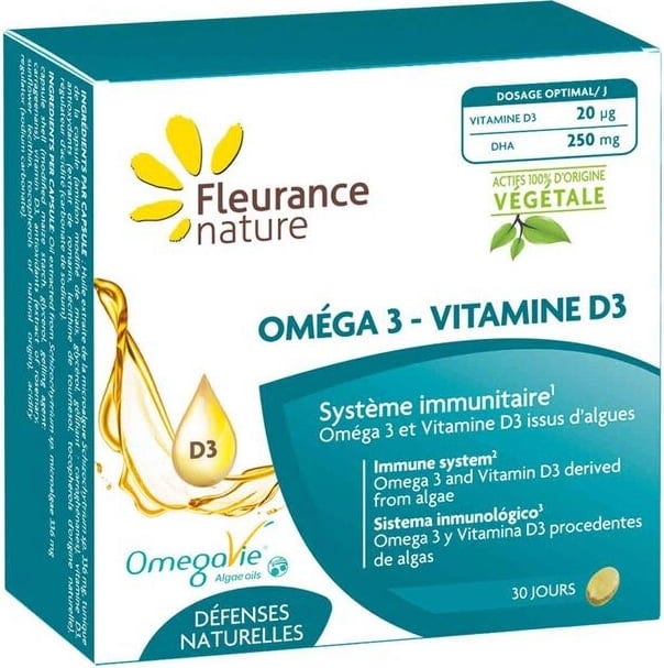 Fleurance Nature Omega 3 - Witamina D3, 30 softgels