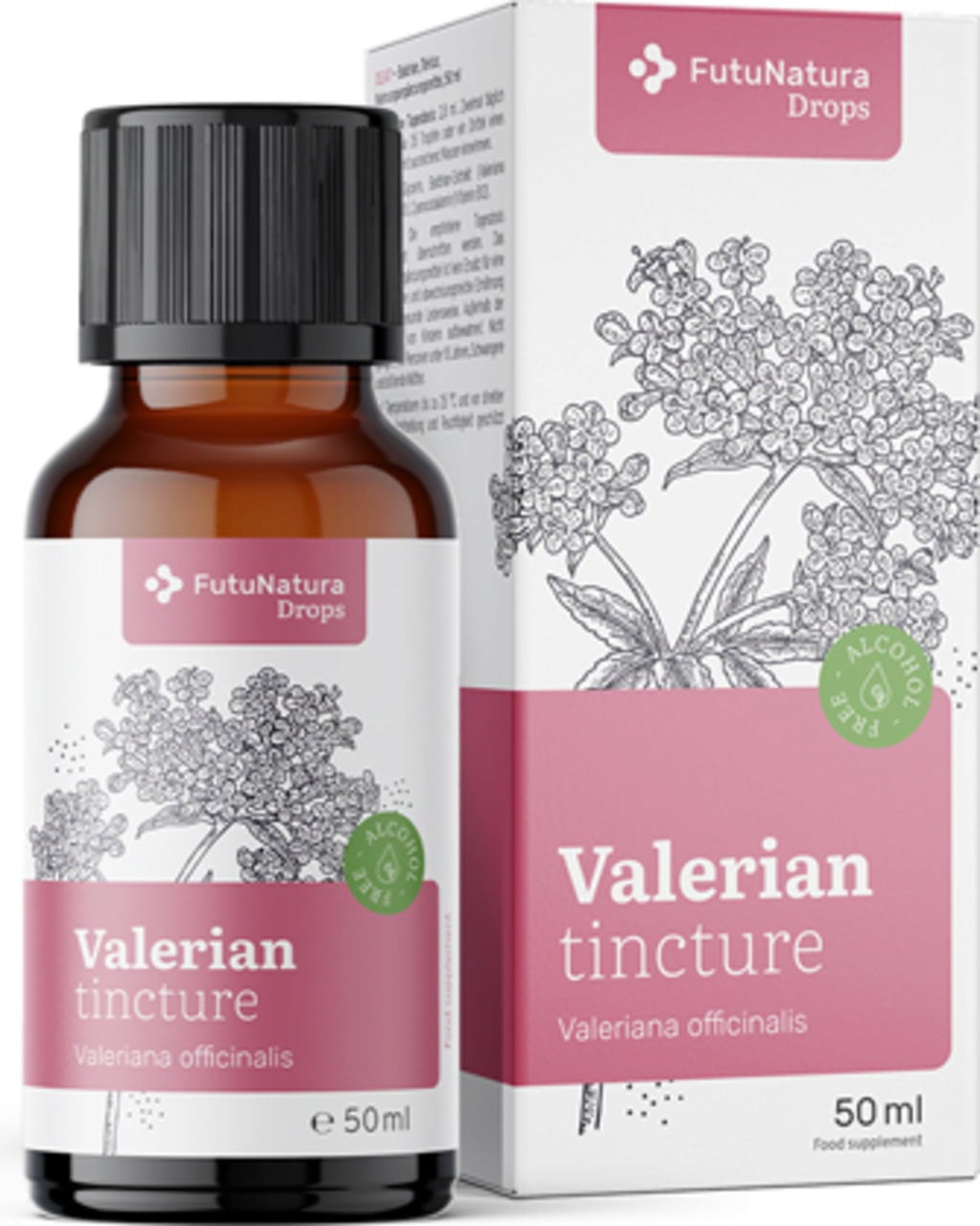Nalewka walerianowa jest częścią linii produktów FutuNatura Drops i jest zapakowana w butelkę z zakraplaczem ułatwiającym dozowanie.