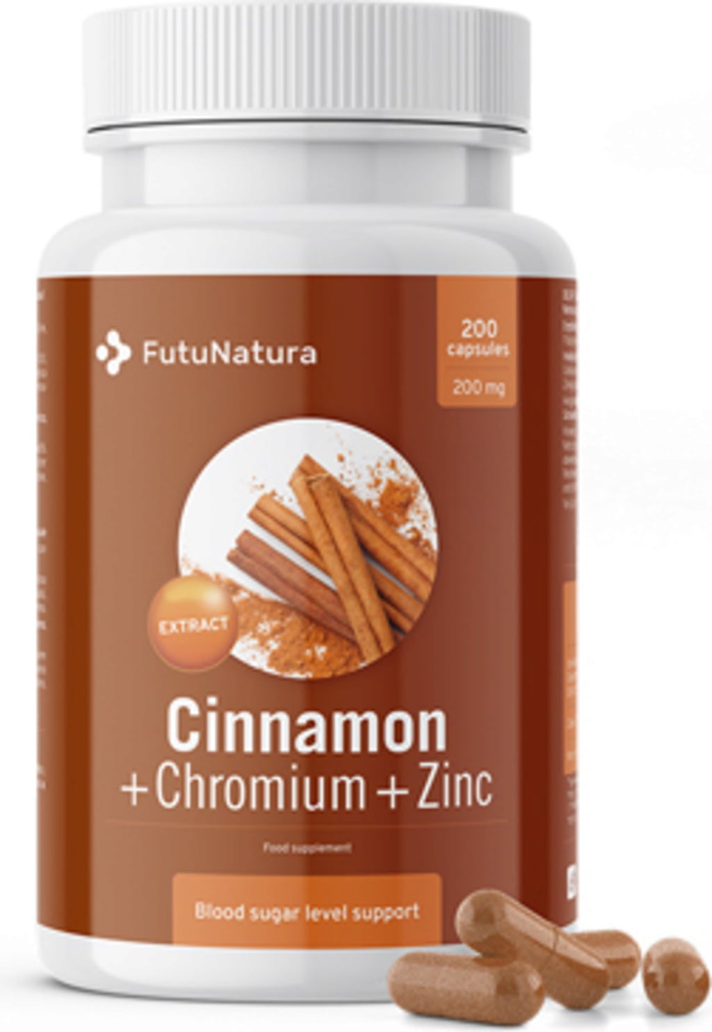 FutuNatura Cynamon + chrom + cynk, 200 kapsułek