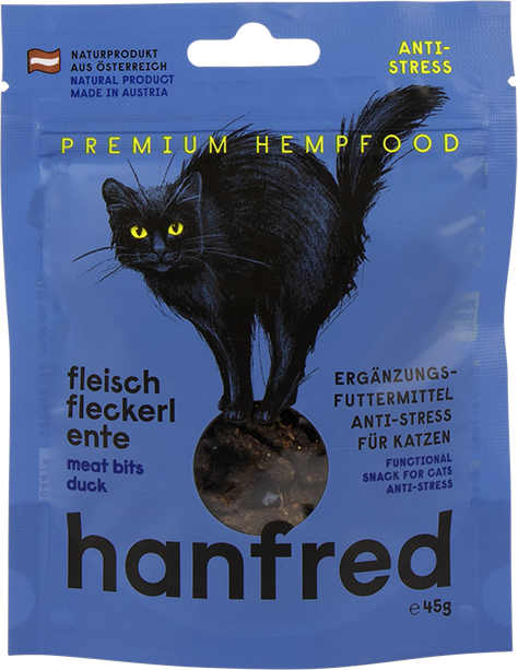 Jeśli Twój kot reaguje wrażliwie na zmiany lub stresujące sytuacje, ta przekąska może być dobrym wyborem. Mięsne przysmaki Hanfred składają się w 95% z mięsa i w 5% z proszku konopnego - bez zbóż i sztucznych dodatków.