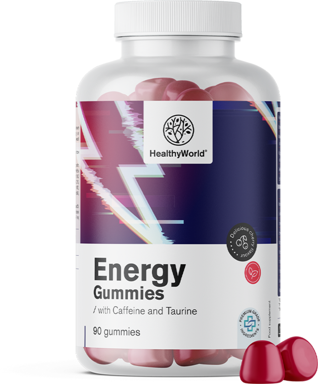 Żelki Energy Gummies zawierają kombinację składników. Należą do nich kofeina, tauryna i różne witaminy. Razem rozwijają one swoje dobrze znane właściwości. Żelki są doskonałą alternatywą dla kapsułek i tabletek, ponieważ są łatwe w przyjmowaniu. Zachwycają wiśniowym smakiem, a także są wegańskie i bezglutenowe.