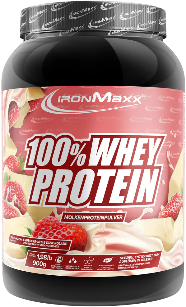 ironMaxx 100% Whey Protein, Truskawka - biała czekolada (900 g)