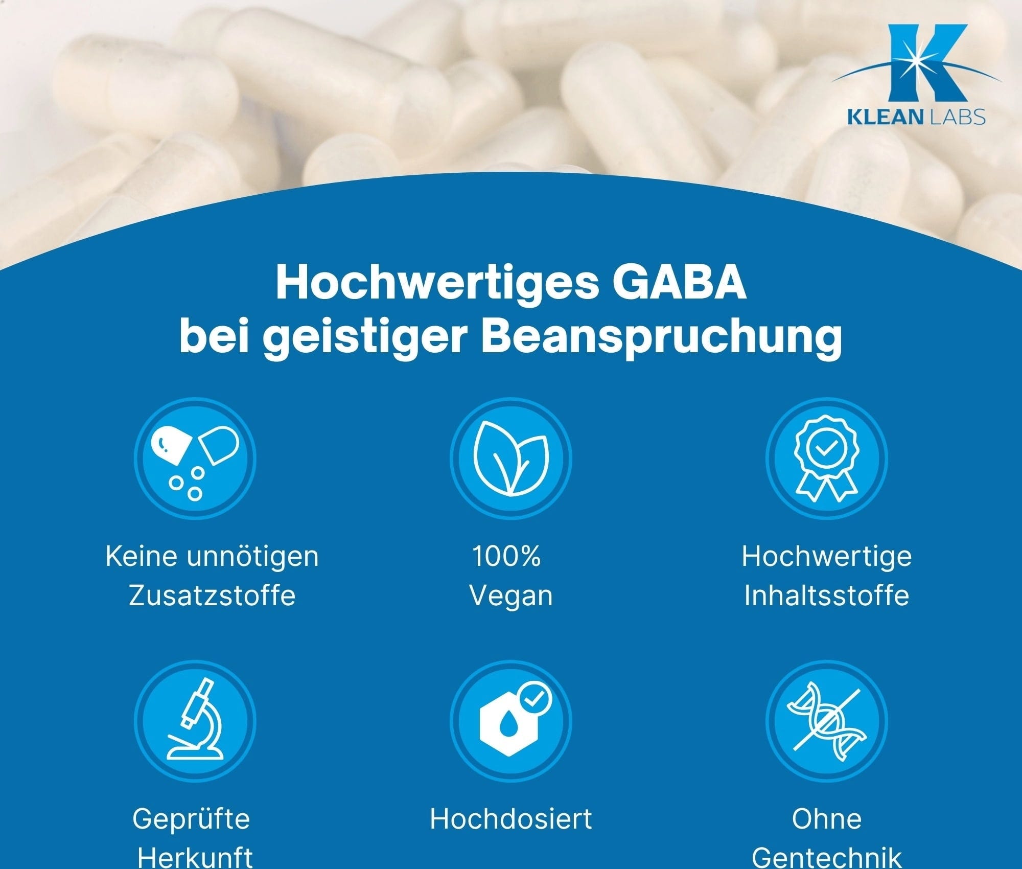 Każda z kapsułek GABA firmy KLEAN LABS zawiera 500 mg kwasu gamma-aminomasłowego. GABA jest neuroprzekaźnikiem i powstaje w mózgu z glutaminianu. Kapsułki są wegańskie i bez inżynierii genetycznej.