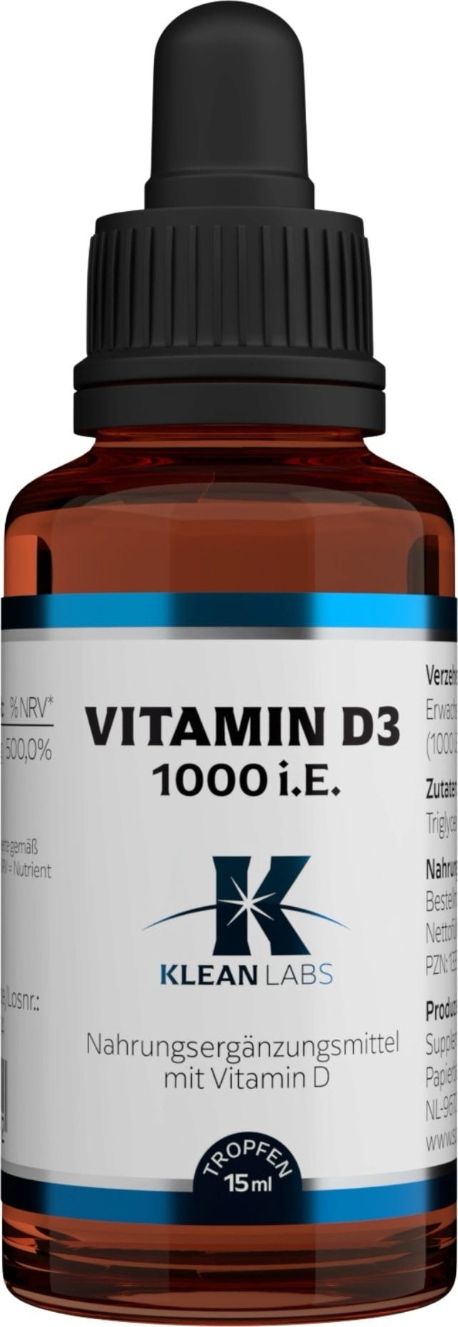 Witamina D3 w postaci monowitaminy i w postaci płynnej od KLEAN LABS. Płyn bez cukru zawiera 1000 IU naturalnej witaminy D3.