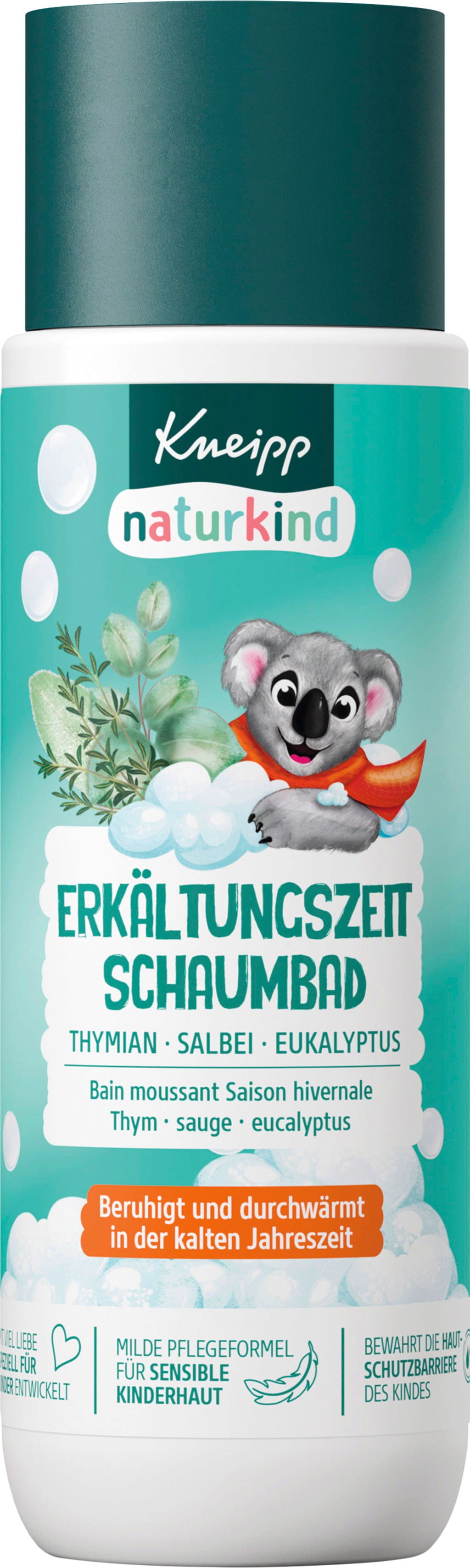 Kneipp naturkind zimna kąpiel bąbelkowa zapewnia dziecku przyjemną pianę o świeżym zapachu. Formuła jest specjalnie dostosowana do potrzeb wrażliwej skóry dzieci i zawiera naturalny ekstrakt z tymianku oraz olejki eteryczne z eukaliptusa i szałwii.