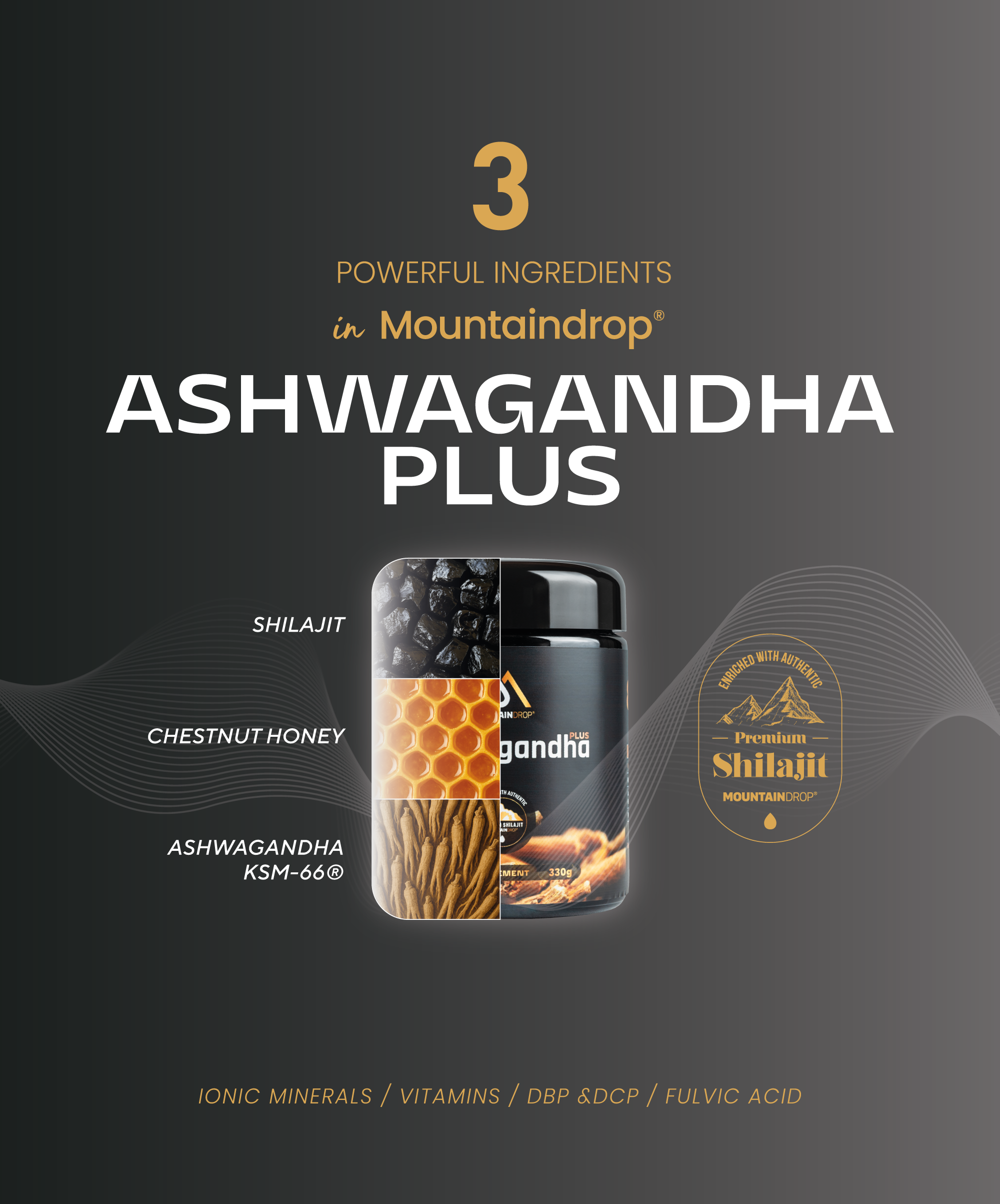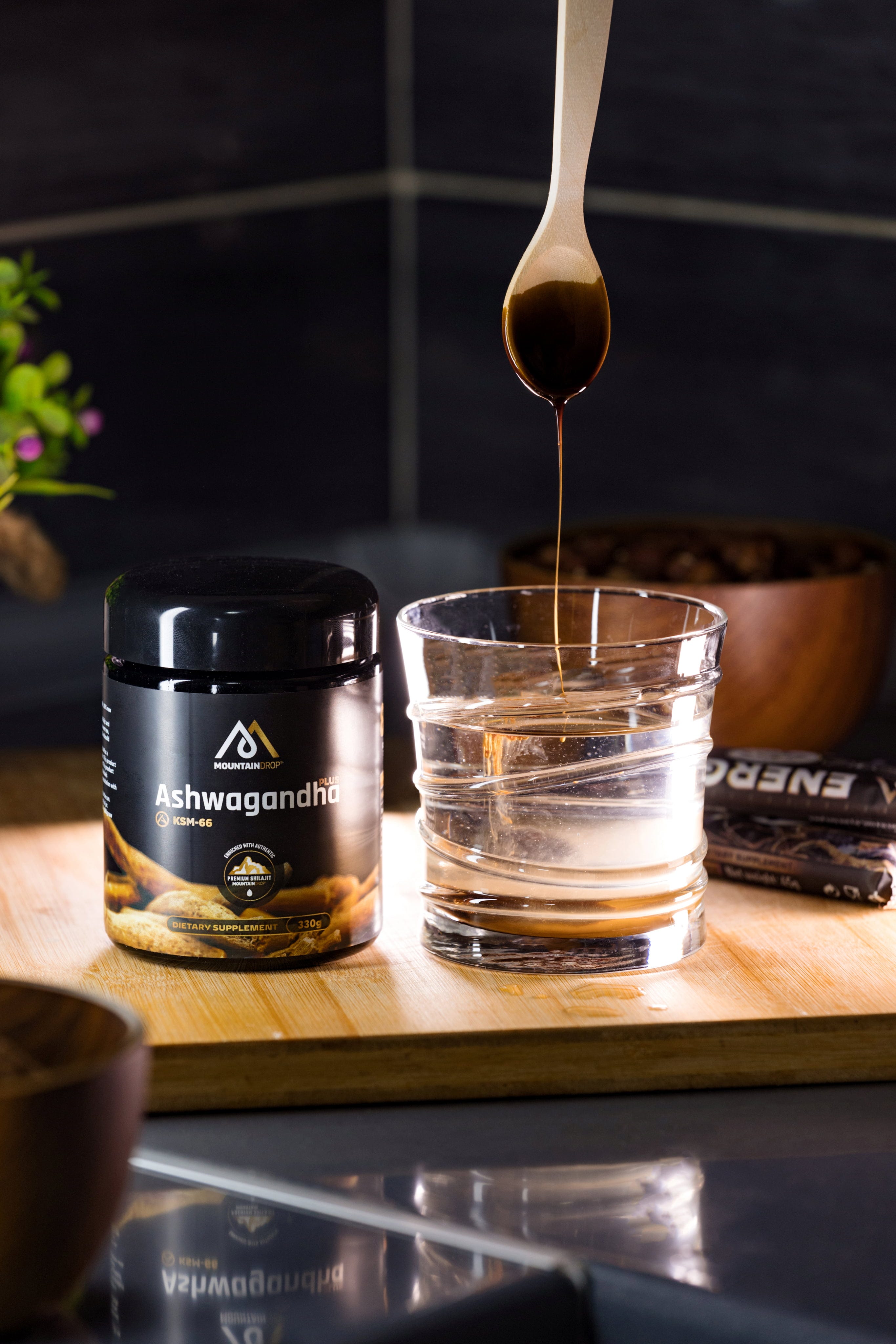 Ashwagandha Plus firmy Mountaindrop łączy w sobie trzy wysokiej jakości naturalne składniki, tworząc funkcjonalną jednostkę do codziennej rutyny. Centralnym elementem jest ekstrakt z ashwagandhy KSM-66®, który w połączeniu z bogatym w minerały shilajitem premium tworzy holistyczną bazę składników odżywczych. Najczystszy miód kasztanowy nie tylko działa jako naturalne źródło energii, ale także harmonijnie łagodzi gorzki smak korzenia ashwagandhy. Jest produkowany w Słowenii bez żadnych wypełniaczy ani sztucznych dodatków, a każda partia jest rygorystycznie testowana pod kątem czystości i bezpieczeństwa mikrobiologicznego przez niezależne laboratoria.