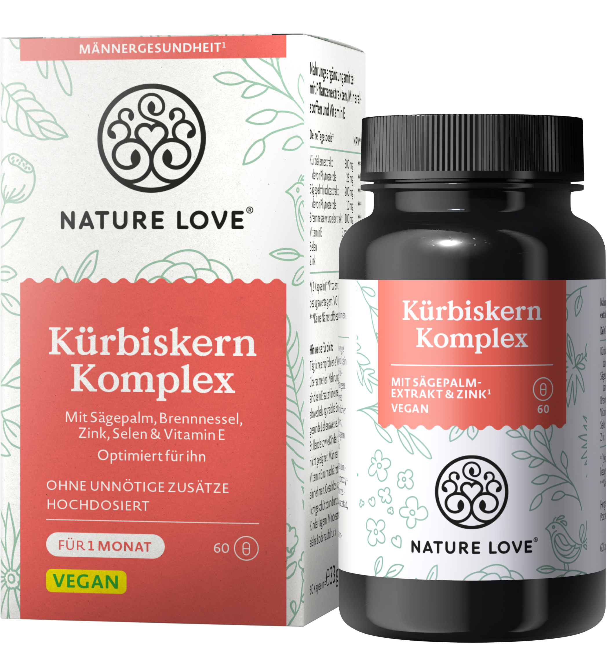 Wegańskie kapsułki z kompleksem z pestek dyni od Nature Love zostały opracowane specjalnie dla mężczyzn. Zawierają cenne fitosterole z pestek dyni oraz ekstrakt z owoców palmy sabałowej. Cynk, witamina E i selen zapewniają dodatkowe wsparcie dla mężczyzn.