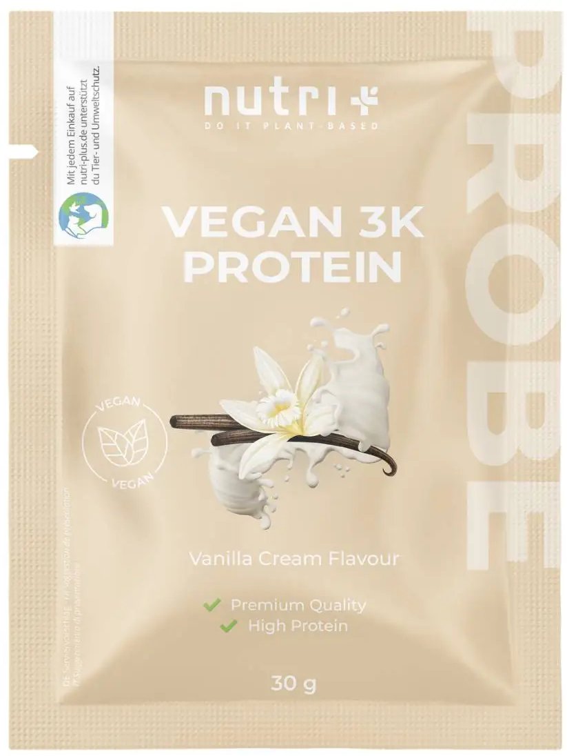nutri + Wegańskie białko w proszku 3K - opakowanie do wypróbowania, Vanilla-Cream (30 g)