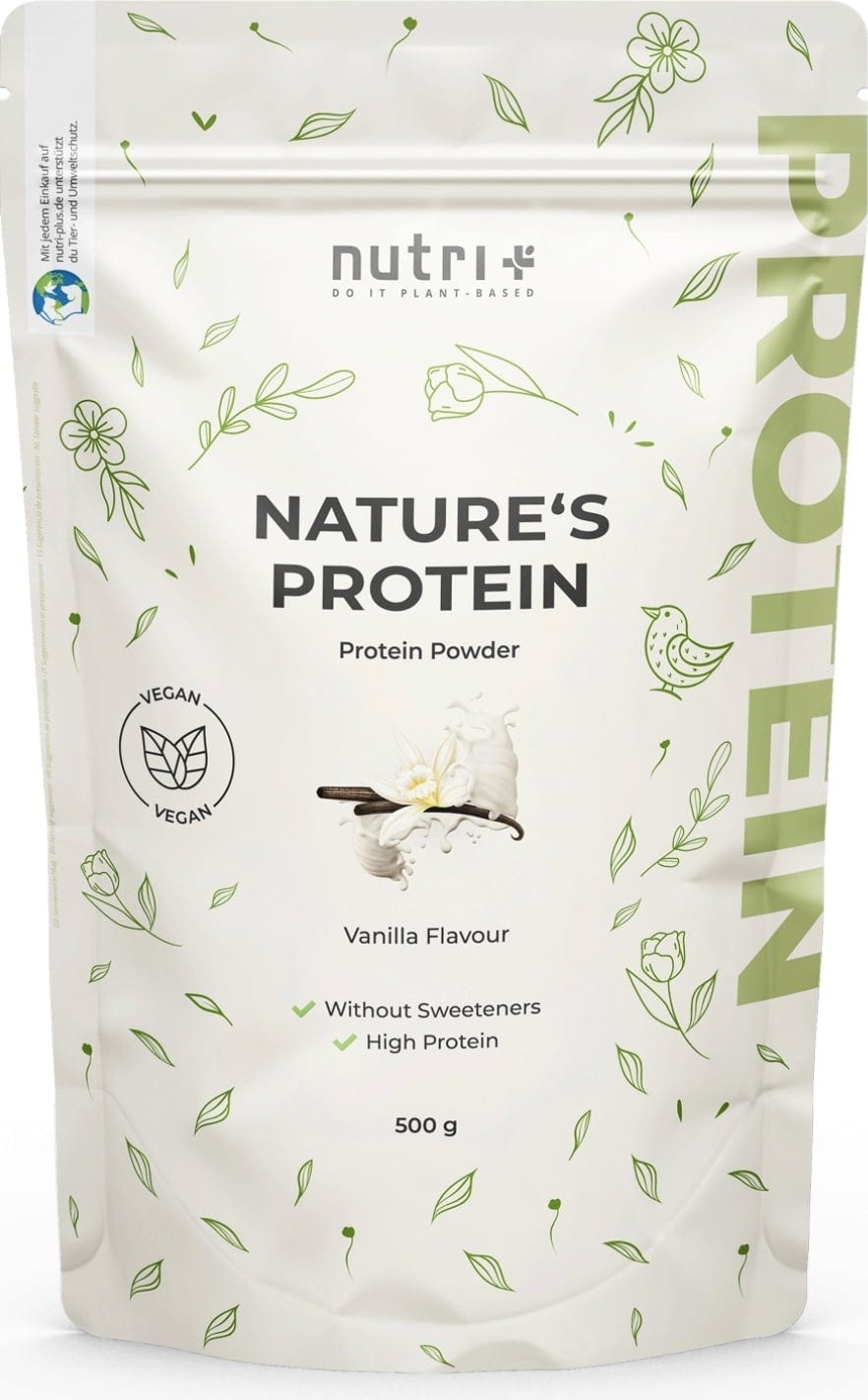 nutri + Wegańskie białko w proszku Natures, Vanilla (500 g)