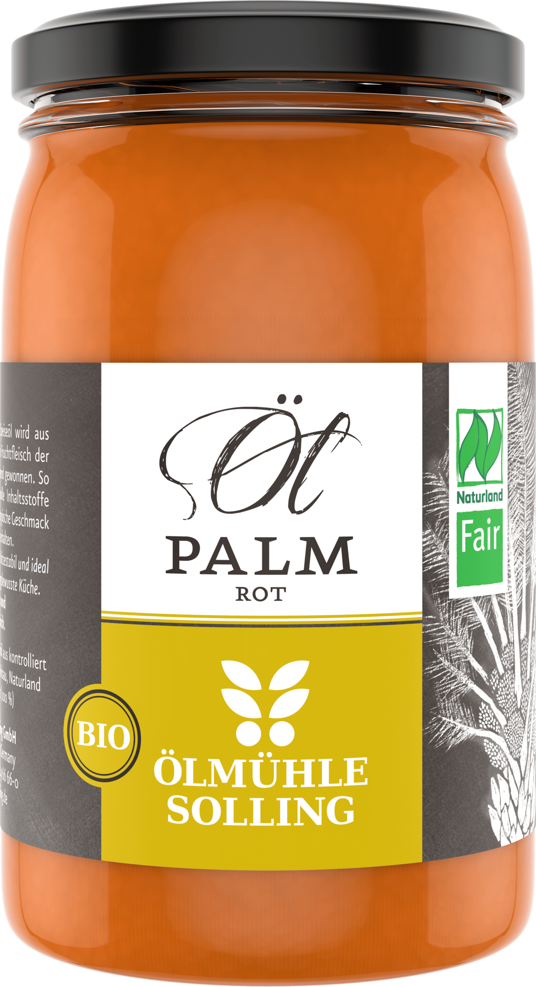 Ten olej palmowy pozyskiwany jest w Ghanie i na uczciwych warunkach. Powstaje w wyniku prostego procesu produkcyjnego, który wymaga dużo pracy fizycznej. Zawiera witaminy A i E, a szczególnie uszlachetnia dania kuchni azjatyckiej i afrykańskiej. Olej jest odporny na ciepło i dlatego można go również stosować do smażenia, duszenia lub smażenia w głębokim tłuszczu. Idealny również do past do smarowania pieczywa.