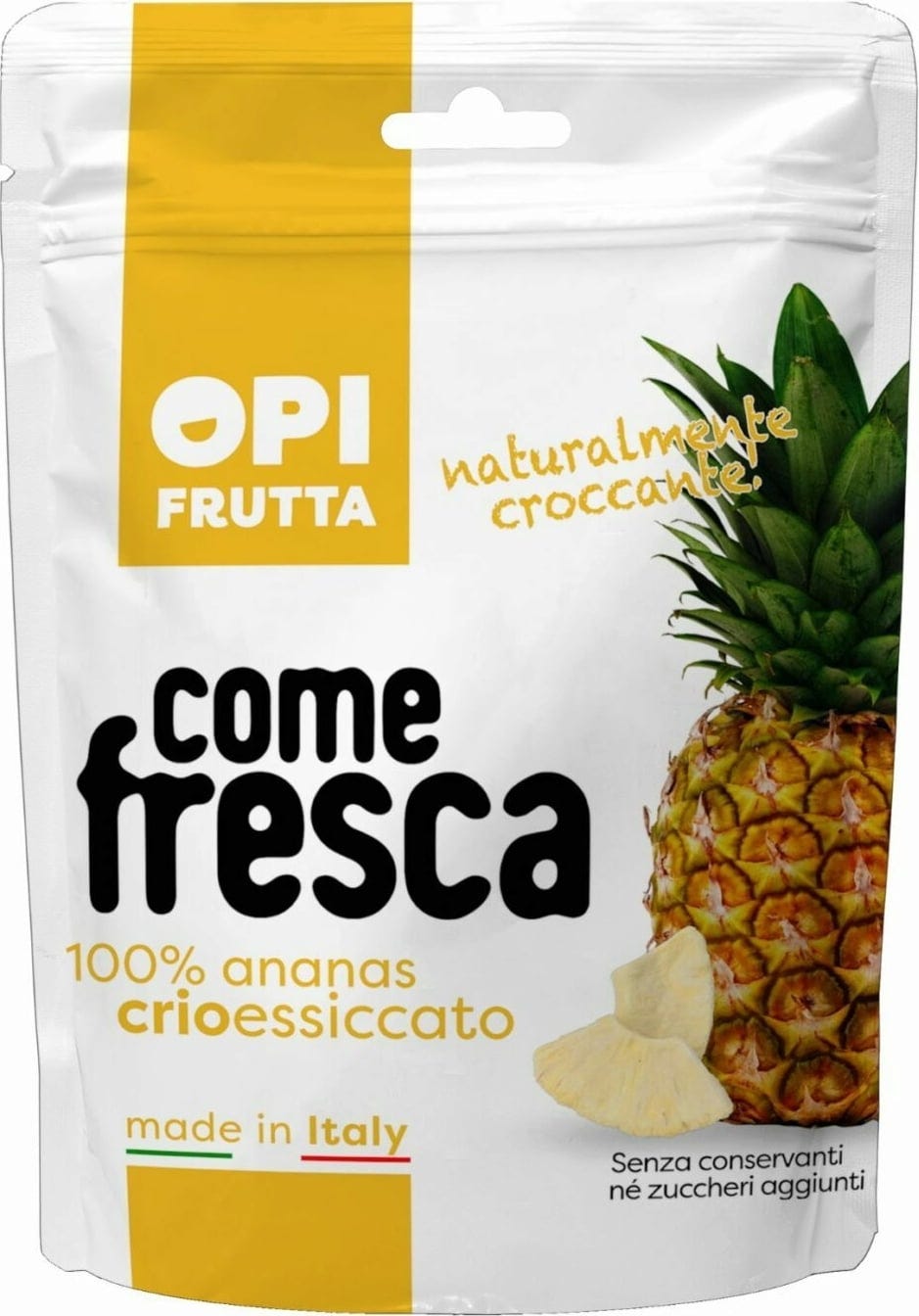 Ten liofilizowany ananas to król przekąsek: owocowy, słodki i naturalnie bogaty w składniki odżywcze. W musli, jako przekąska między posiłkami lub w smoothie - dzięki tej owocowej przekąsce możesz cieszyć się tropikalną świeżością o każdej porze roku.
