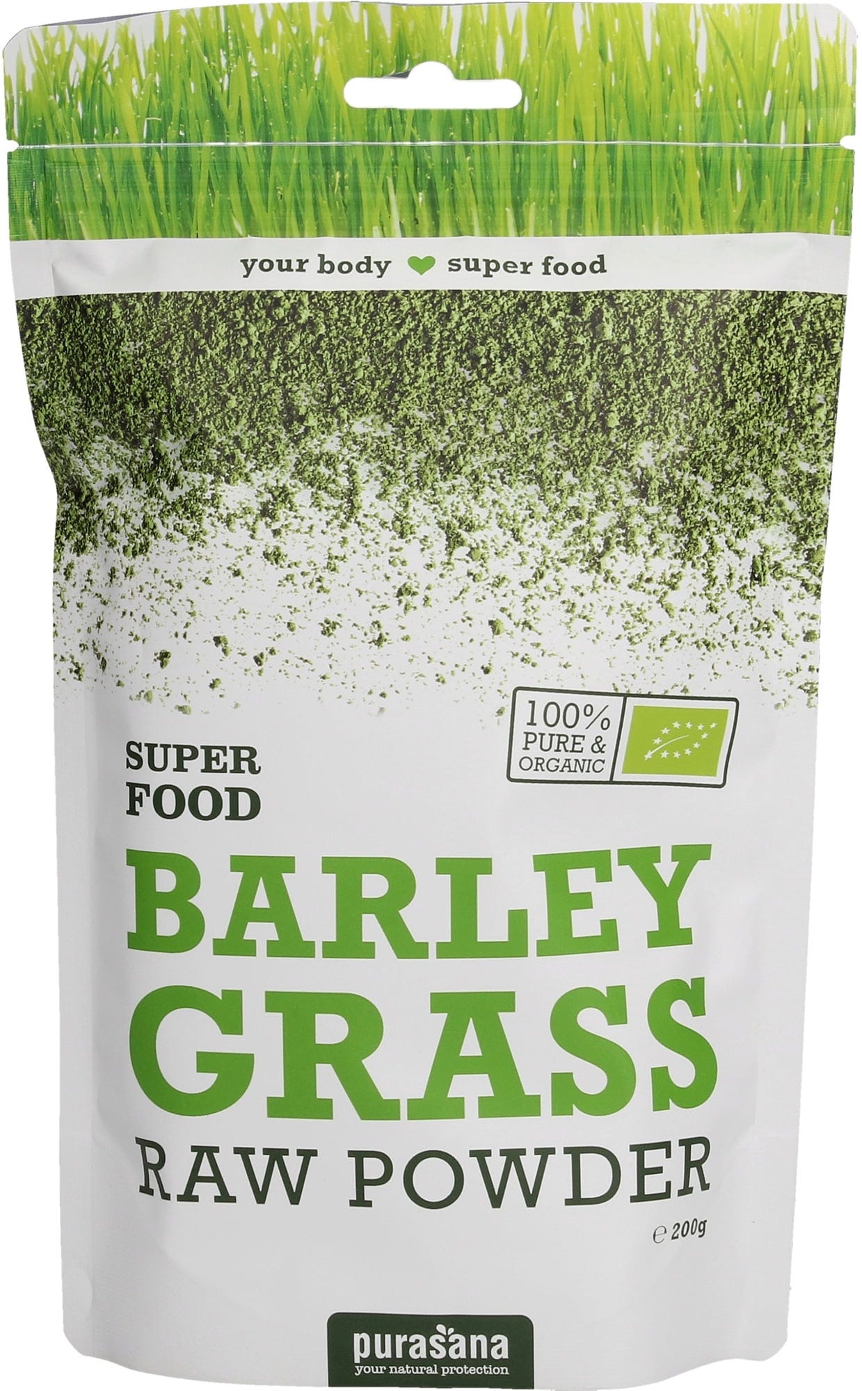Organiczna trawa jęczmienna w proszku od Purasana jest uzyskiwana ze świeżych, młodych pędów rośliny i jest bogaty w składniki witalne. Jest ona źródłem składników odżywczych i wtórnych substancji roślinnych. Zawarty chlorofil dba o równowagę pH w organizmie.
