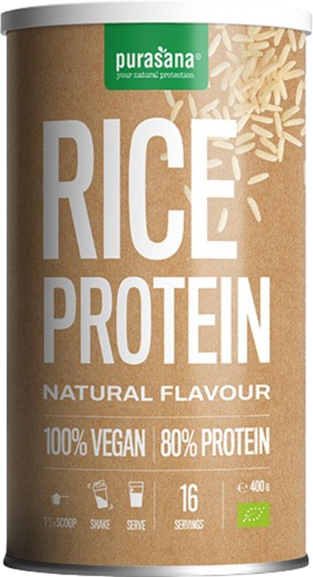 Organiczne białko ryżowe w proszku firmy Purasana jest hipoalergicznym źródłem białka z niemodyfikowanego genetycznie ryżu.