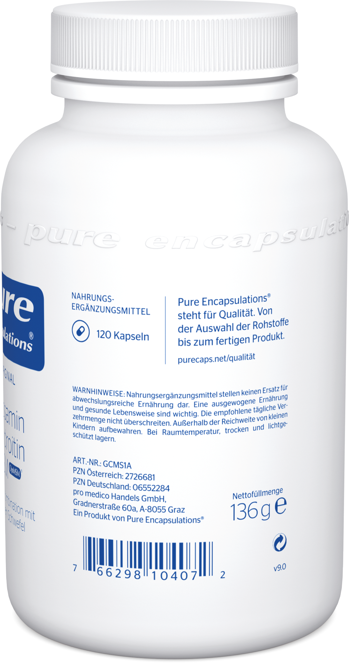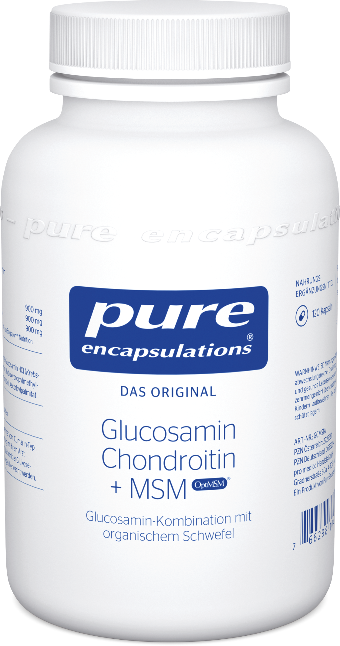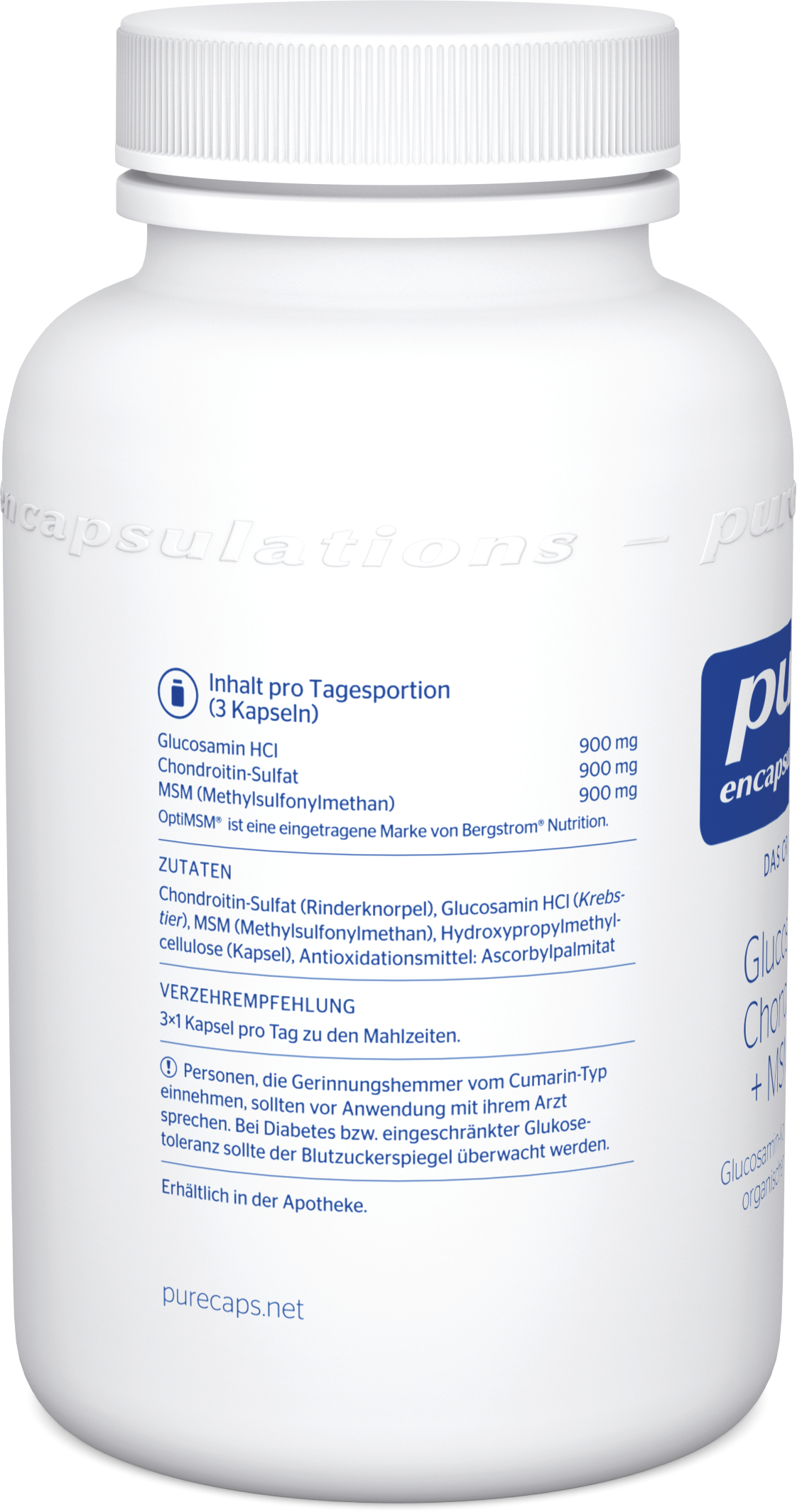 siarczan chondroityny (Rinderknorpel), Glucosamin HCL (Krebstier), Metylosulfonylometan (MSM) (Metylosulfonylometan), hydroksypropylometyloceluloza (kapsułka), środek przeciwutleniający (askorbylopalmitynian)