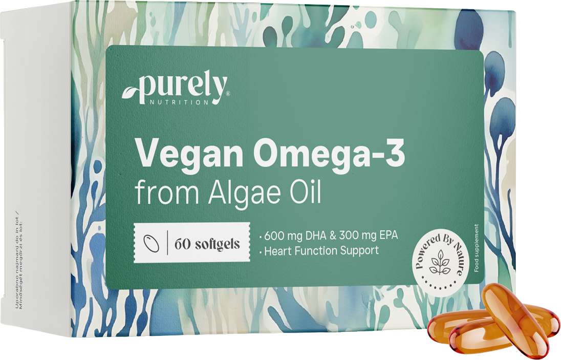 Olej pozyskiwany z mikroalg stanowi podstawę Vegan Omega-3 1100 mg - z alg. Algi są naturalnym źródłem kwasów omega-3, a olej z alg stanowi roślinną alternatywę dla oleju z ryb. Miękkie kapsułki są uzupełnione witaminą E i są łatwe do przyjmowania.