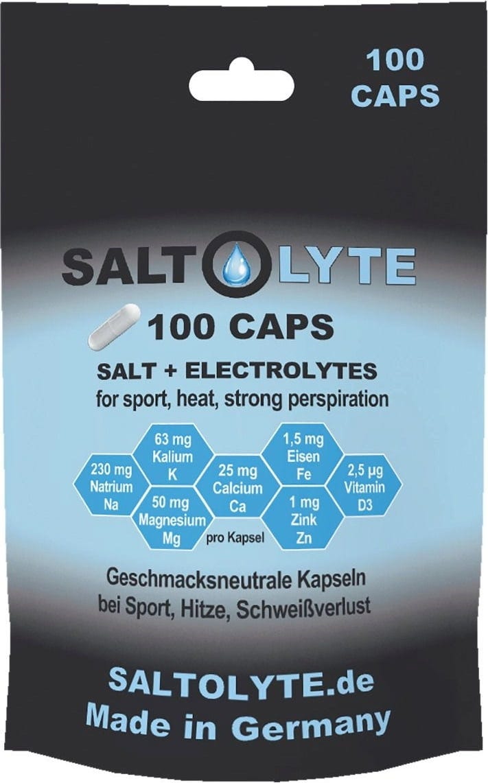 Te niearomatyzowane kapsułki zawierają połączenie sodu, potasu, wapnia, magnezu, żelaza, cynku i witaminy D3. Opracowany dla sportowców, którzy dużo się pocą podczas aktywności takich jak triathlon, bieganie, jazda na rowerze, piłka nożna lub fitness. Wegetariańska otoczka kapsułki zapewnia przyjemne przyjmowanie bez słonego posmaku.