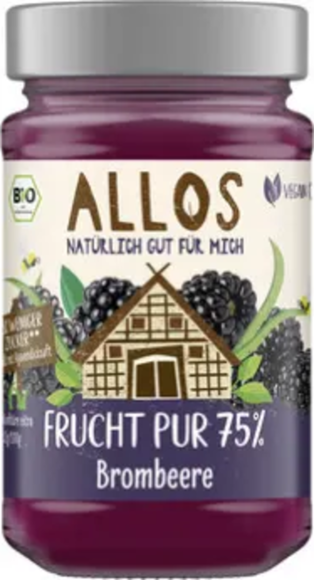 Czysty owocowy smak chleba śniadaniowego: ALLOS umożliwia to teraz dzięki dżemowi organicznemu czyste owoce 75%. W przypadku tej odmiany soczyste, ciemnoczerwone oraz błyszczące czarne jeżyny są delikatnie przetwarzane i uzupełniane słodyczą syropu z agawy. Wegańskie i zawierające 58% mniej cukru.