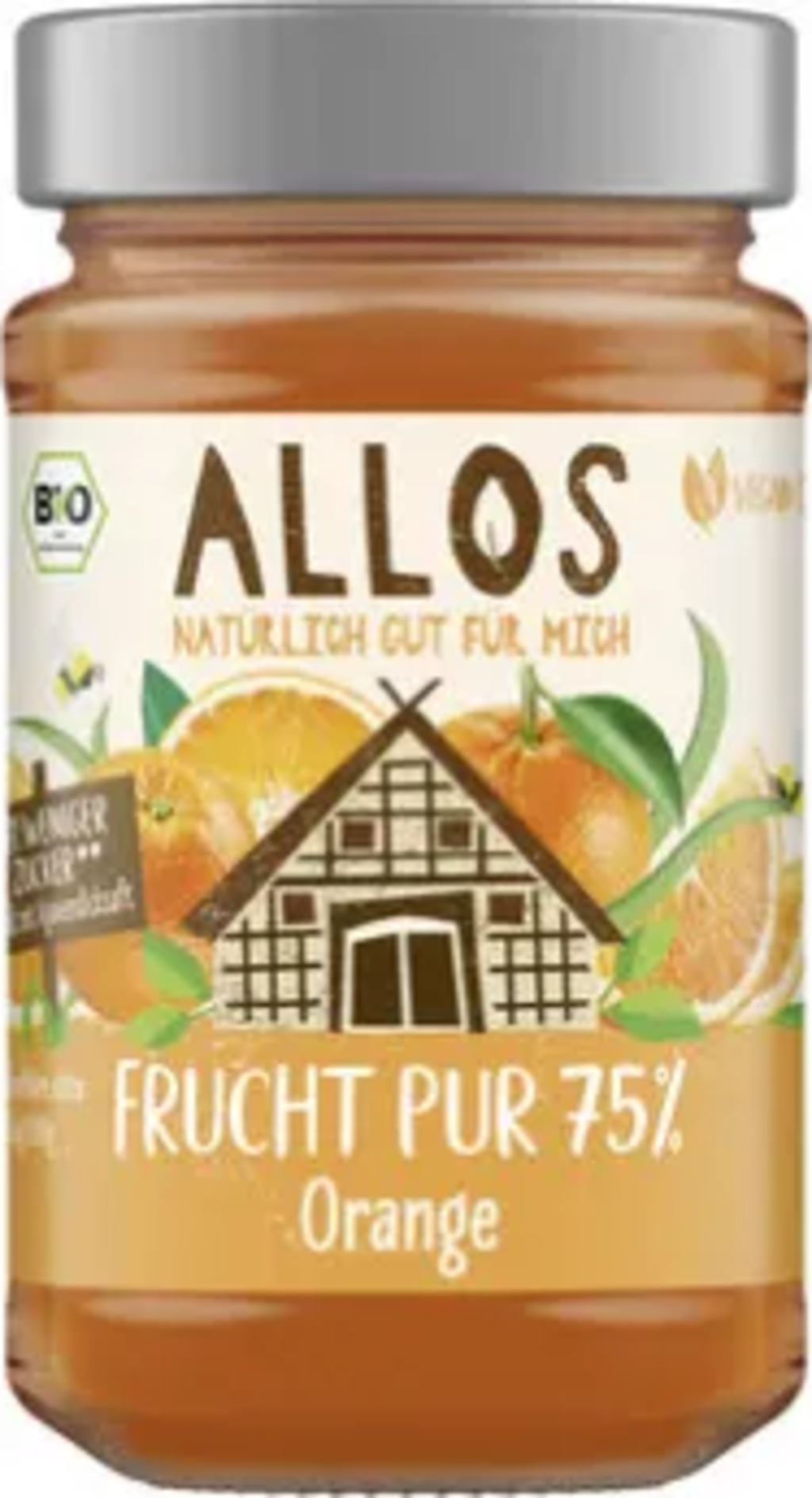 Czysty owocowy smak chleba śniadaniowego: ALLOS umożliwia to teraz dzięki dżemowi organicznemu czyste owoce 75%. Dojrzewające w słońcu pomarańcze są delikatnie przetwarzane na tę odmianę i dopełniane słodyczą syropu z agawy. Wegańskie i z 57% mniejszą zawartością cukru.