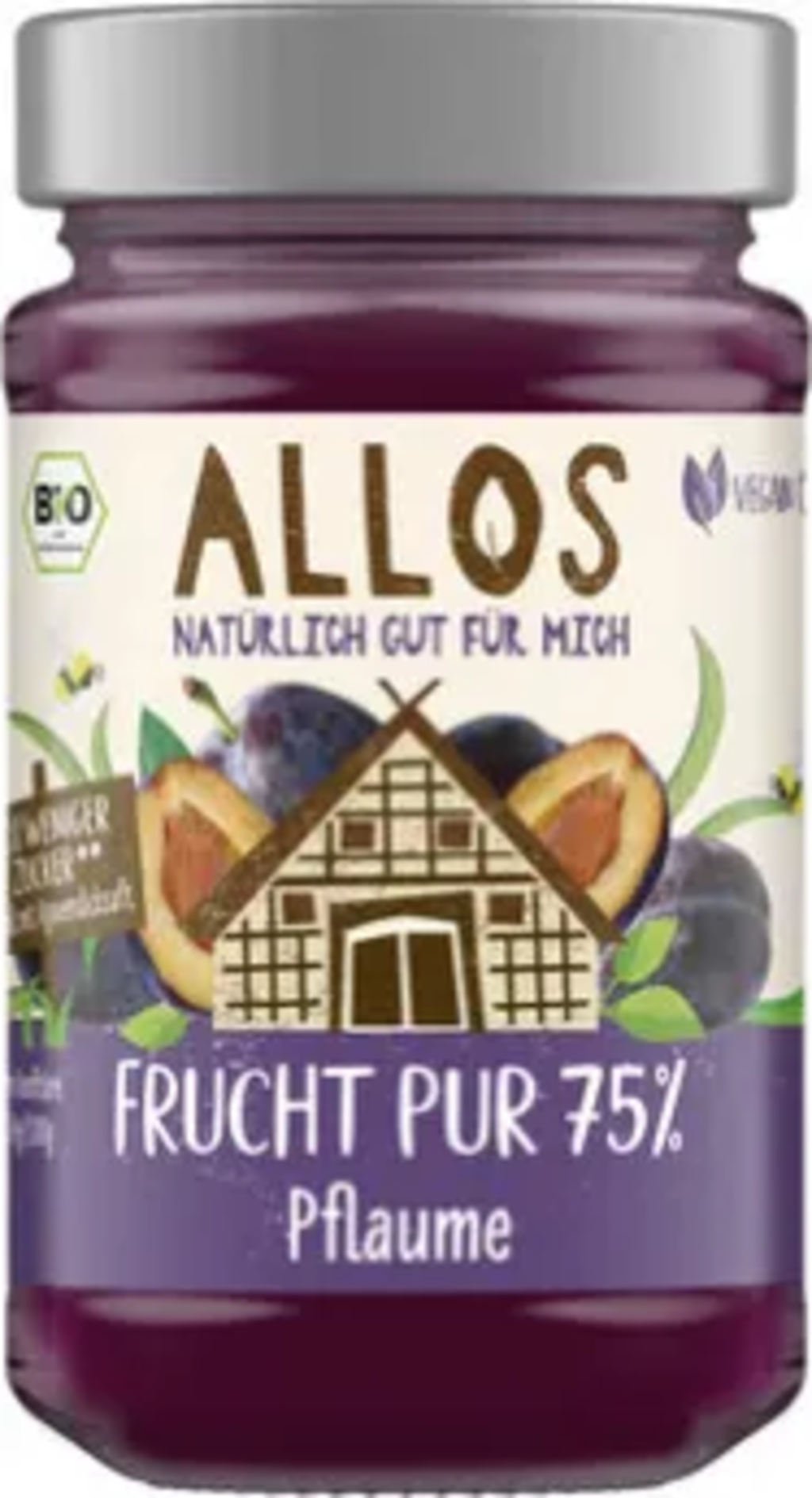 Czysty owocowy smak chleba śniadaniowego: ALLOS umożliwia to teraz dzięki dżemowi organicznemu czyste owoce 75%. W przypadku tej odmiany dojrzewające w słońcu śliwki są delikatnie przetwarzane i dopełniane słodyczą syropu z agawy. Wegańskie i o 50% mniej cukru.