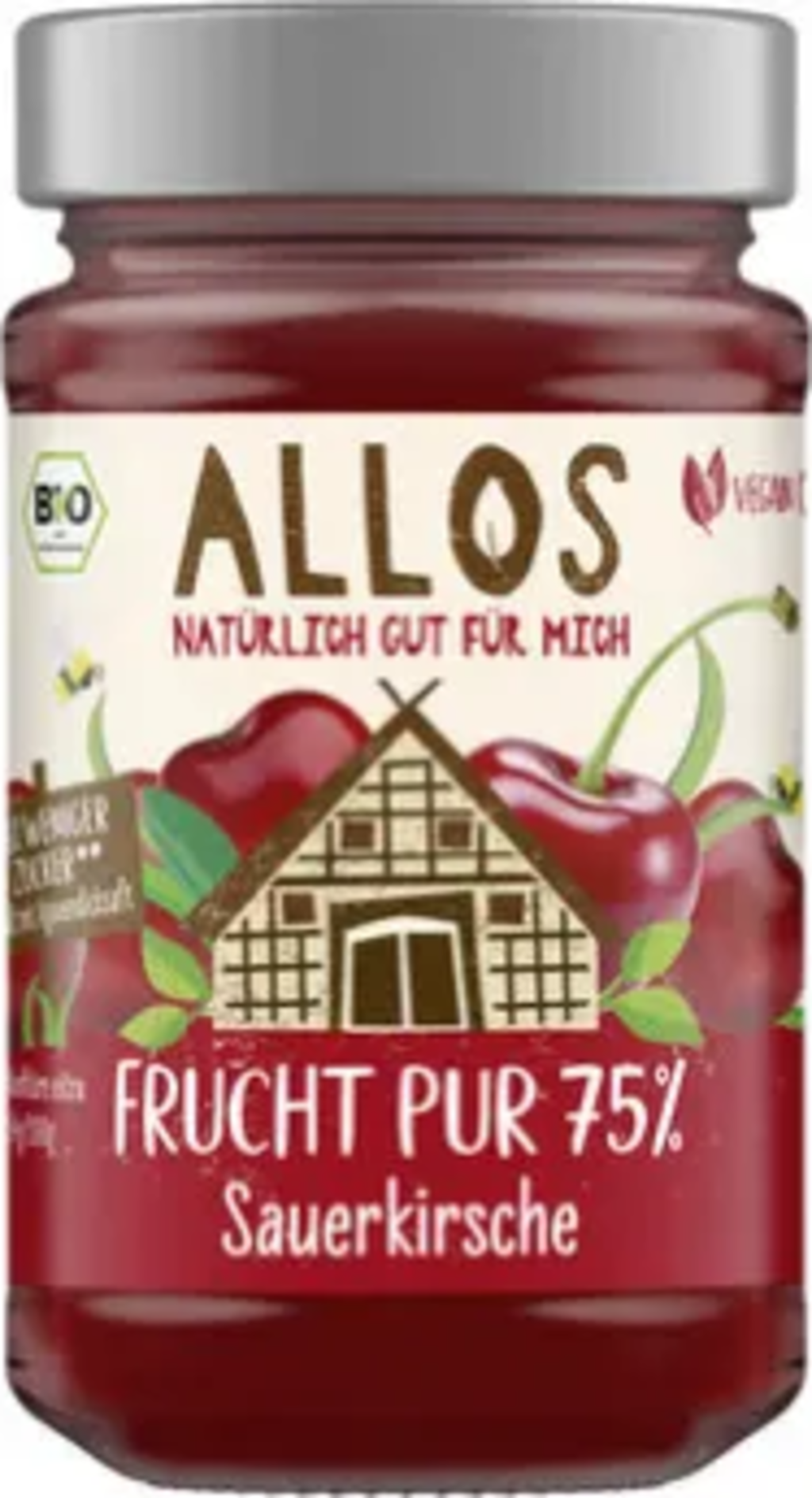 Czysty owocowy smak chleba śniadaniowego: ALLOS umożliwia to teraz dzięki dżemowi organicznemu czyste owoce 75%. W przypadku tej odmiany wiśnie są delikatnie przetwarzane i dopełniane słodyczą syropu z agawy. Optymalne połączenie lekkiej kwasowości i naturalnej słodyczy. Wegańskie i zawierające 54% mniej cukru.