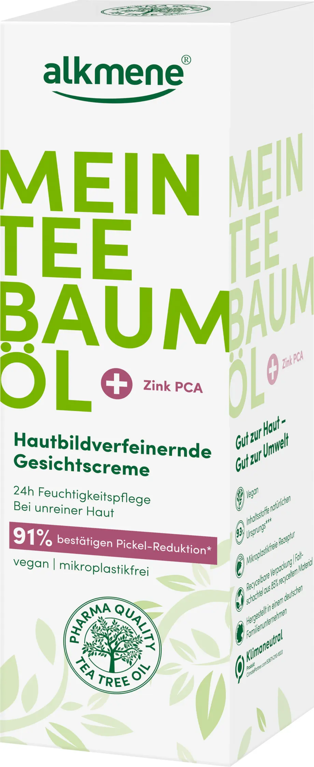 Ten udoskonalający skórę krem do twarzy jest wzbogacony olejkiem z drzewa herbacianego i cynkiem PCA, dzięki czemu idealnie nadaje się do skóry z niedoskonałościami. Wegańska i wolna od mikroplastików formuła pomaga oczyścić pory, a także zapobiega powstawaniu wyprysków.