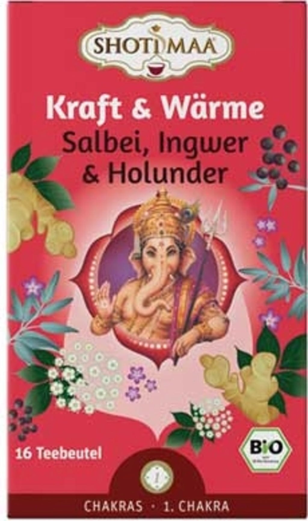 Shoti Maa Bio herbata - I am (1. czakra) - szałwia, imbir, bez, 16 torebek herbaty (32 g)