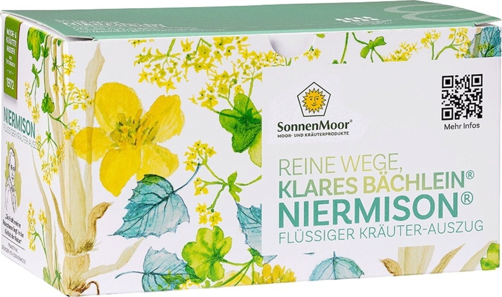 Niermison to czysto naturalny produkt firmy SonnenMoor oparty na starannie wyważonej recepturze. Płynna mieszanka łączy w sobie właściwości dziesięciu ziół, takich jak łozina, brzoza, topola serowa, babka zwyczajna i skrzyp polny w wysokiej jakości ekstrakcie.