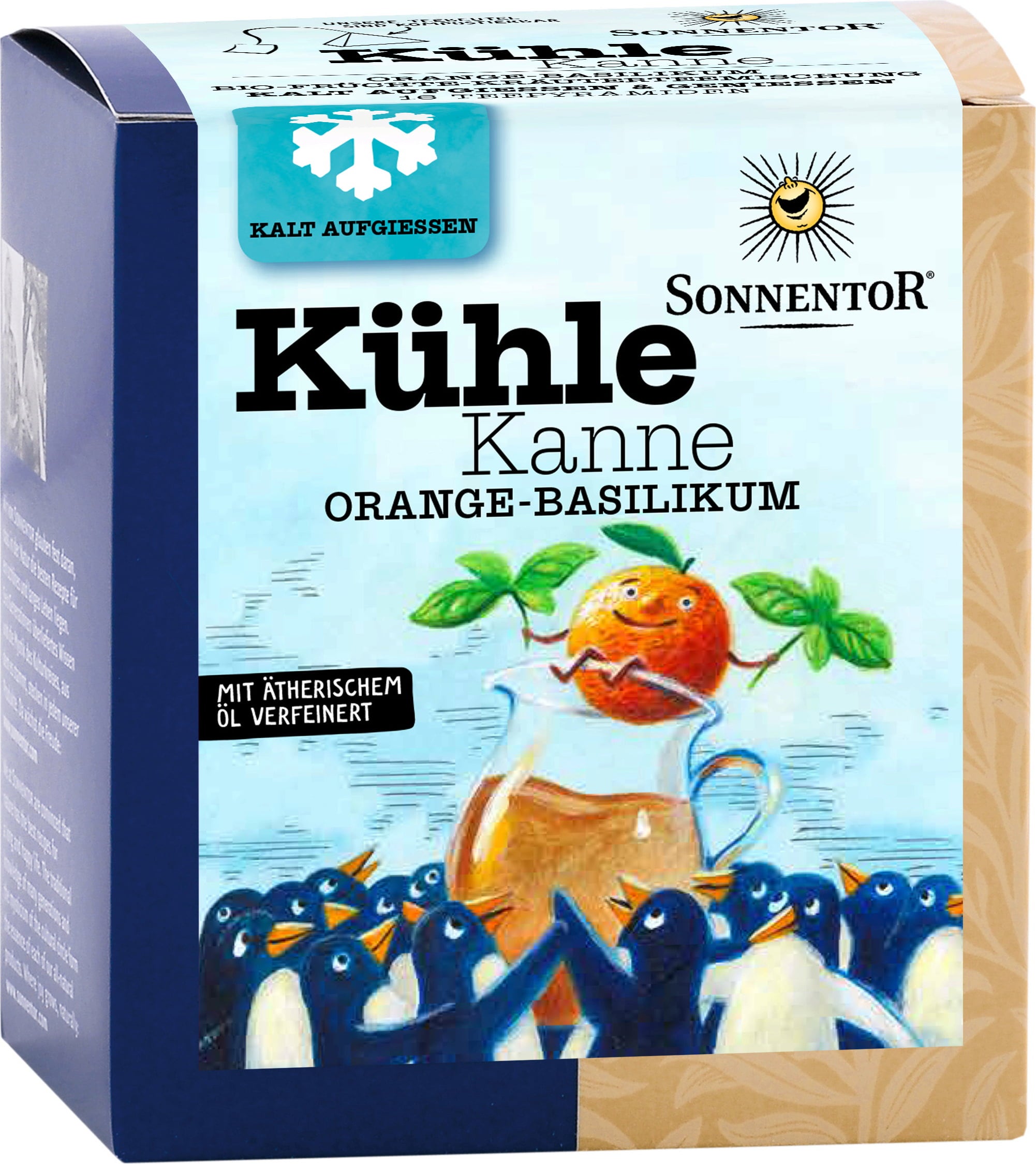Wyślij czajnik na wakacje, ponieważ niezwykły duet pomarańczy i bazylii można zalać zimną wodą. Owocowe mango zapewnia również wyjątkową świeżość. Możesz dodać świeże zioła, aby stworzyć indywidualny smak.