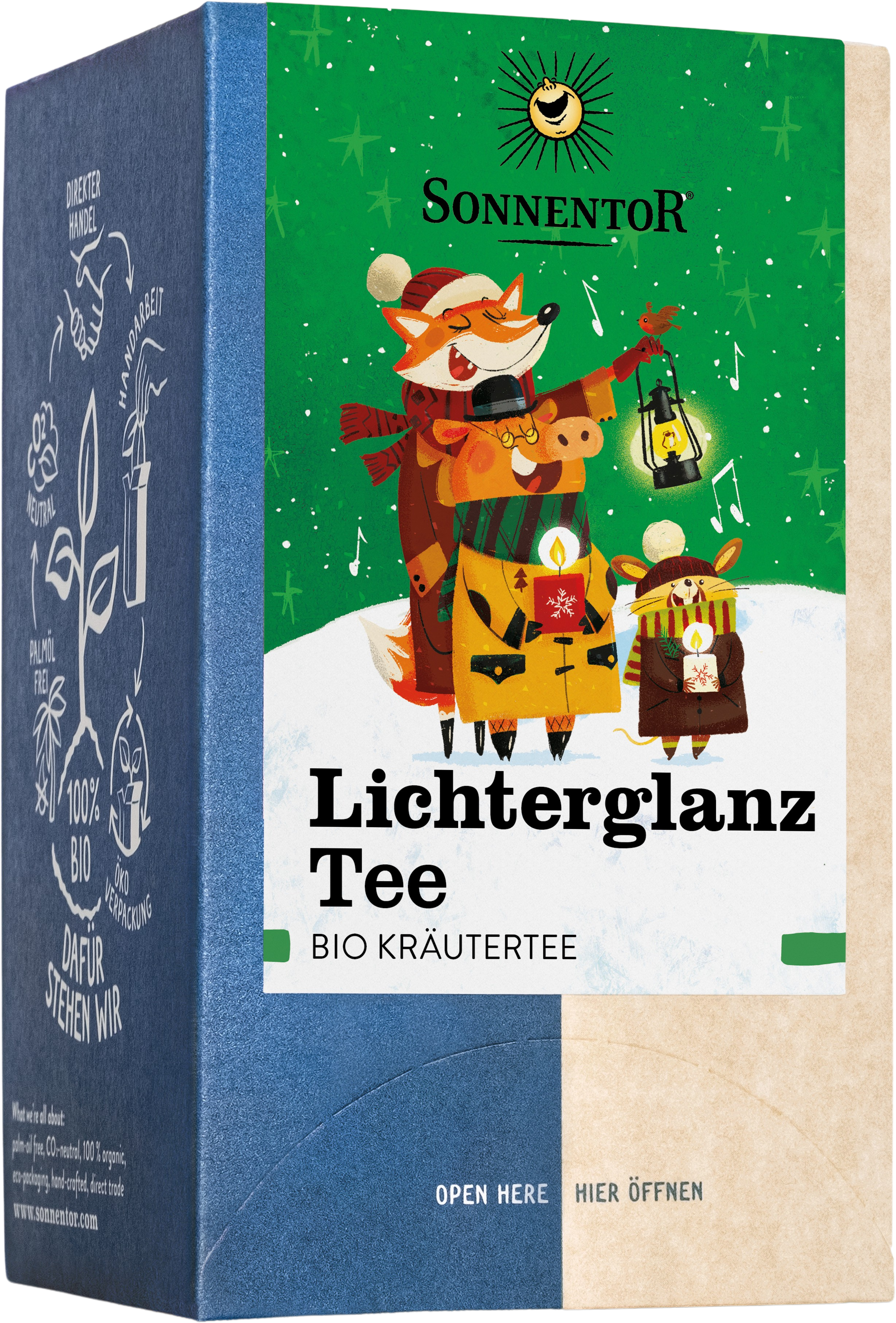 Mieszanka herbat „Lichterglanz” firmy Sonnentor pozwala tańczyć w czasie Adwentu i świąt! Zawiera pikantną melisę i werbenę, aksamitny cynamon cejloński, mocny anyż gwiazdkowaty, delikatną wanilię, aromatyczną górską herbatę z Grecji oraz delikatne płatki róż i skórkę pomarańczy dla łagodnej, owocowej nuty.