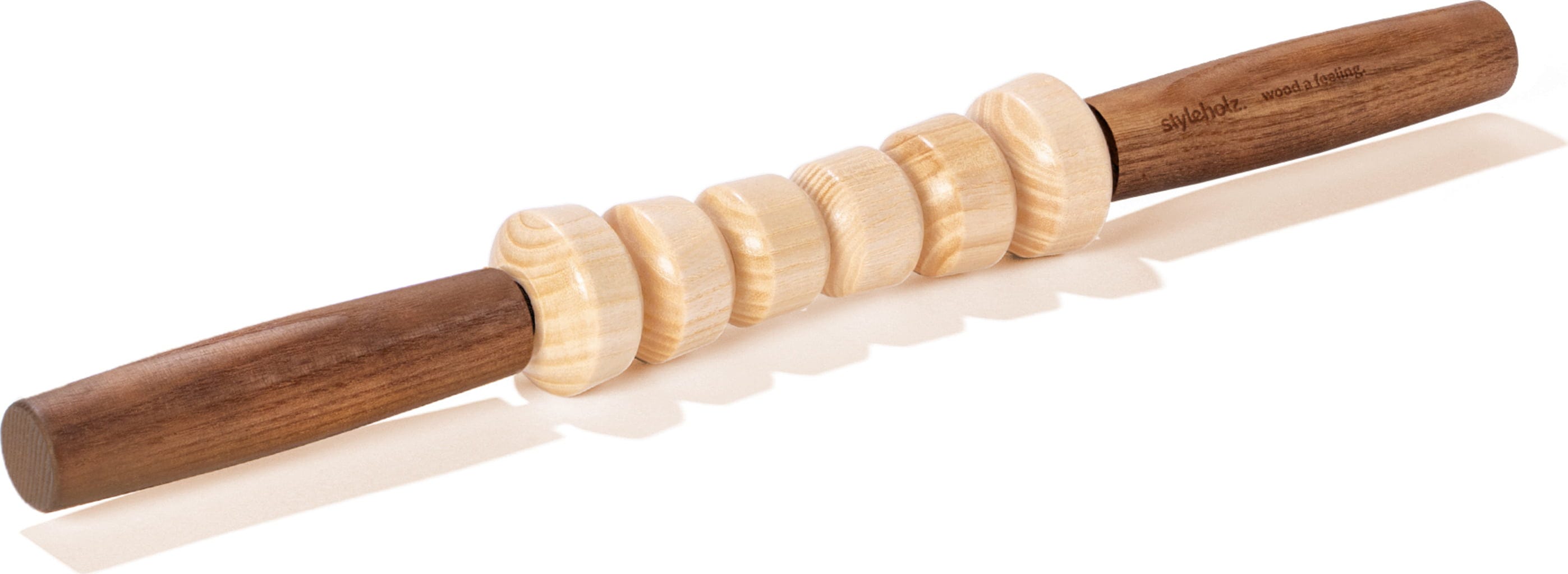 Woodstick MINI od Styleholz to kompaktowe narzędzie do masażu, które zostało specjalnie zaprojektowane do użytku w pozycji siedzącej lub stojącej. Wykonany w austriackiej manufakturze z regionalnego drewna jesionowego, ten kij powięziowy oferuje wysokiej jakości odczucia podczas codziennej rutyny. Szczególną cechą jest zintegrowana, elastyczna oś wewnętrzna, która pozwala drążkowi delikatnie dostosować się do indywidualnych konturów ciała podczas użytkowania. Dzięki niewielkim rozmiarom i niskiej wadze idealnie nadaje się do selektywnego masażu mniejszych grup mięśni ramion, nóg lub szyi. Wysokiej jakości drewno wykończone naturalnym olejem sprawia, że masażer jest zrównoważoną i trwałą alternatywą do użytku w domu, w biurze lub w podróży.