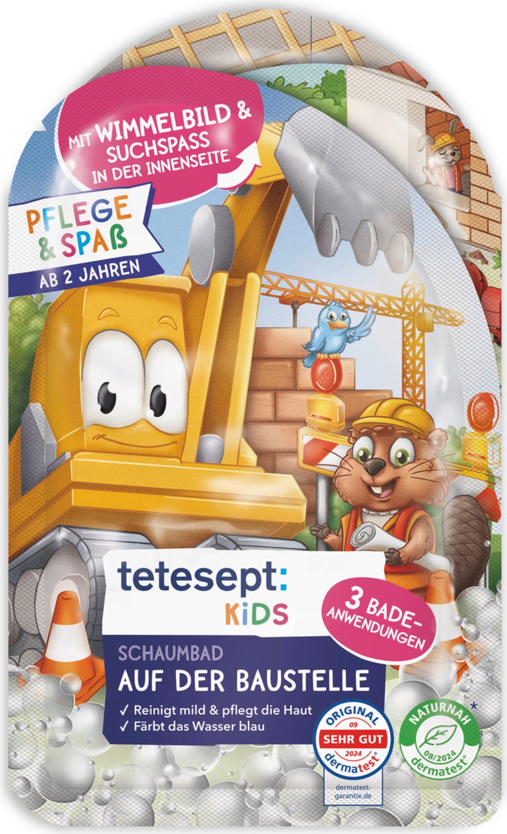 Dodatek do kąpieli dla dzieci - budowa od tetesept zapewnia zabawę i emocje w wannie. Barwnik spożywczy zabarwia wodę na niebiesko, a owocowy zapach odświeża zmysły. Ale bez obaw: skóra, włosy i wanna nie są zabarwione. Płyn do kąpieli jest odpowiedni dla dzieci w wieku od 2 lat i wystarcza na 3 użycia.