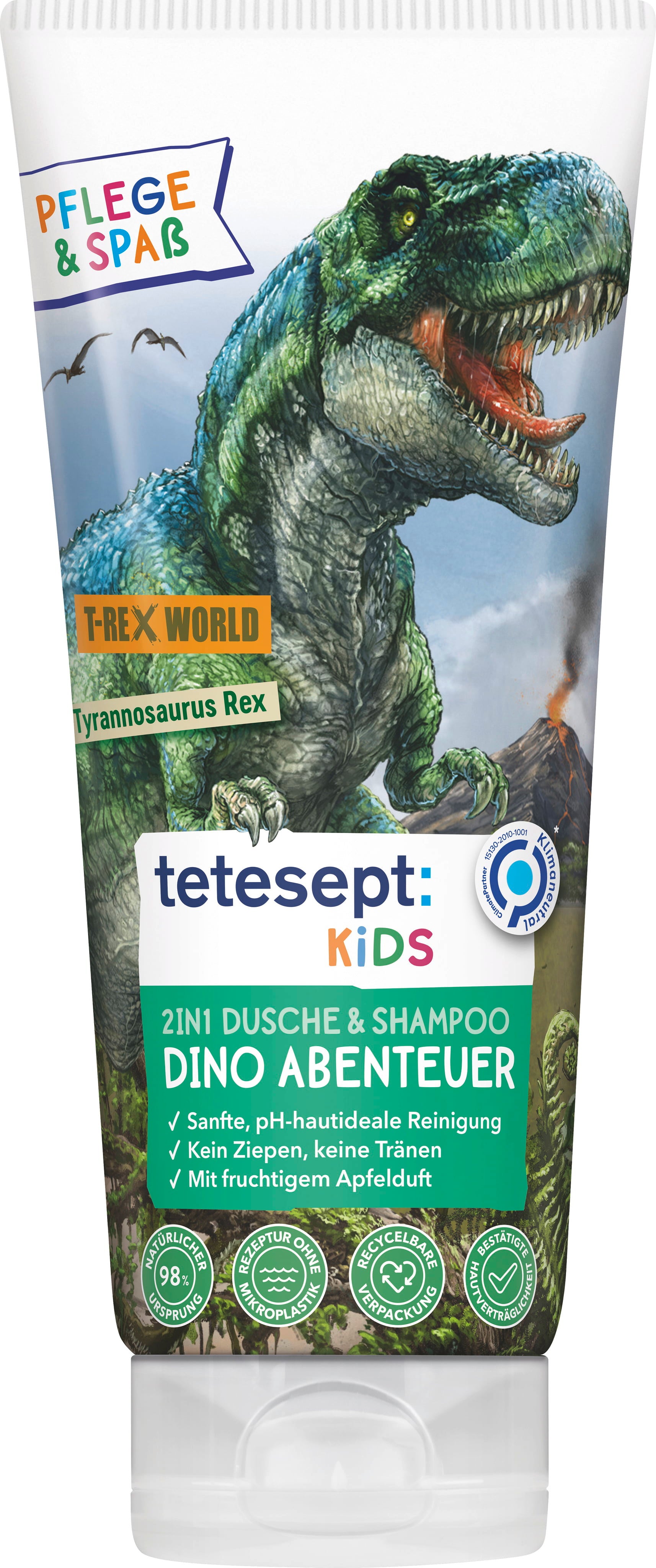tetesept Żel pod prysznic i szampon dla włosów dla dzieci 2 w 1 - przygoda z dinozaurem, 200 ml