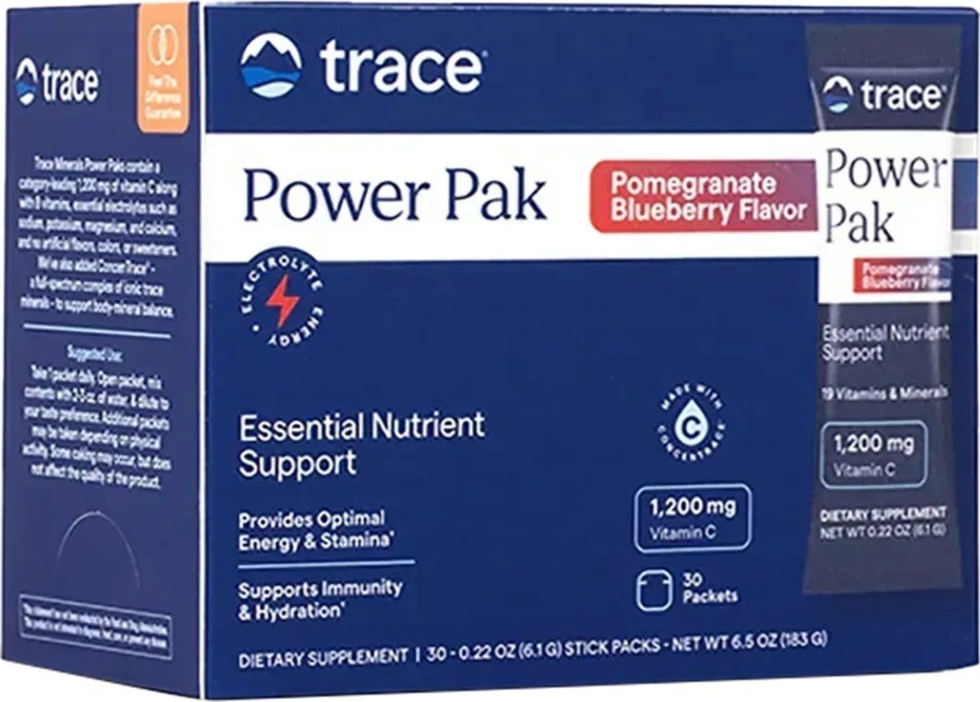 Trace Minerals Research Power Pak Electrolyte Stamina & Vitamin C, Borówka-granat (30 Worczków)