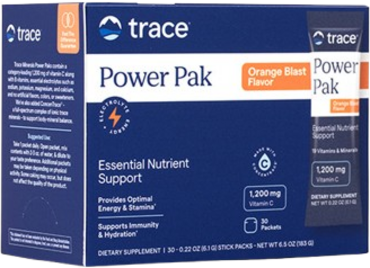 Trace Minerals Research Power Pak Electrolyte Stamina & Vitamin C, Pomarańcza (30 Worczków)