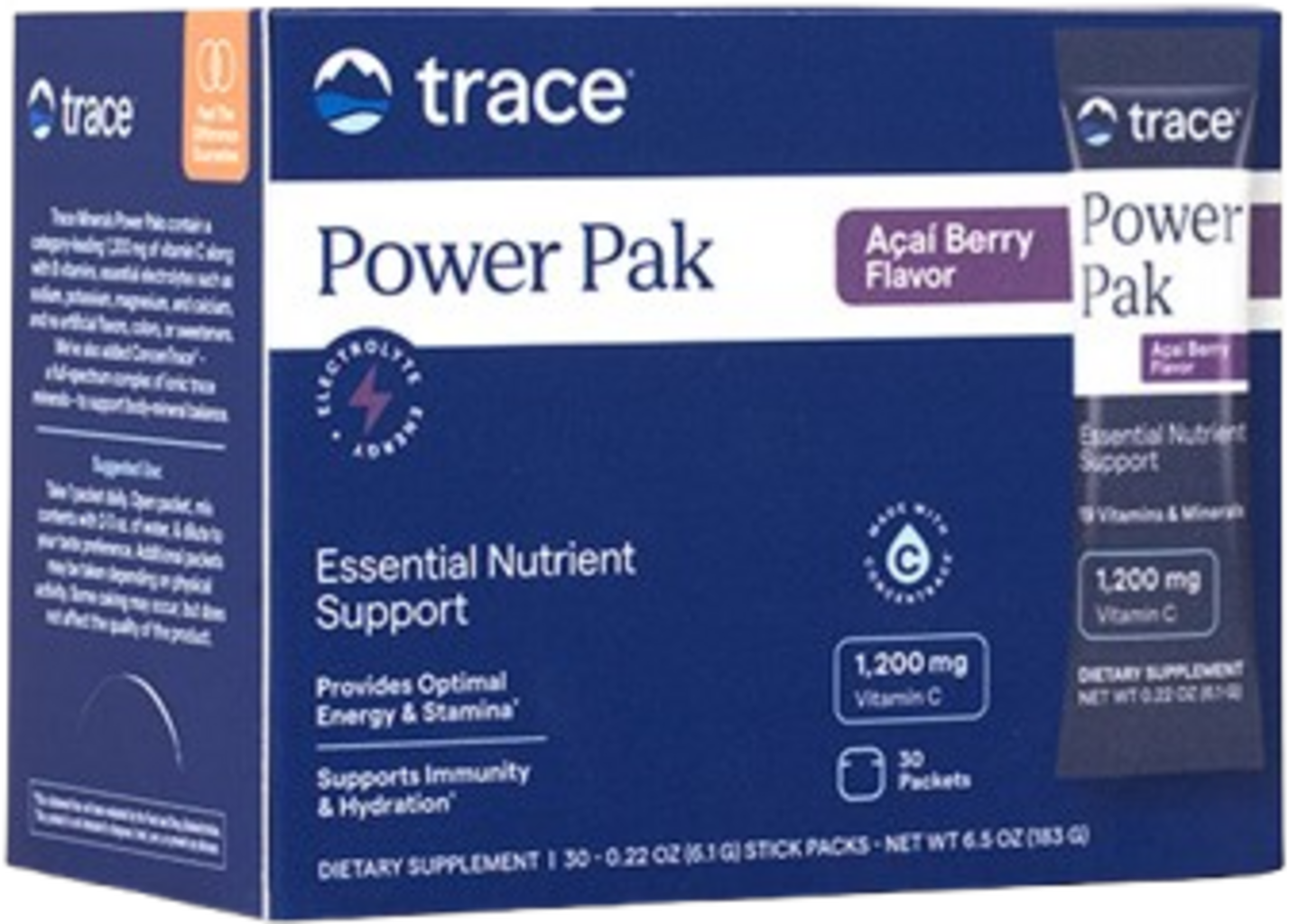 Trace Minerals Research Power Pak Electrolyte Stamina & Vitamin C, Jagoda Acai (30 Worczków)